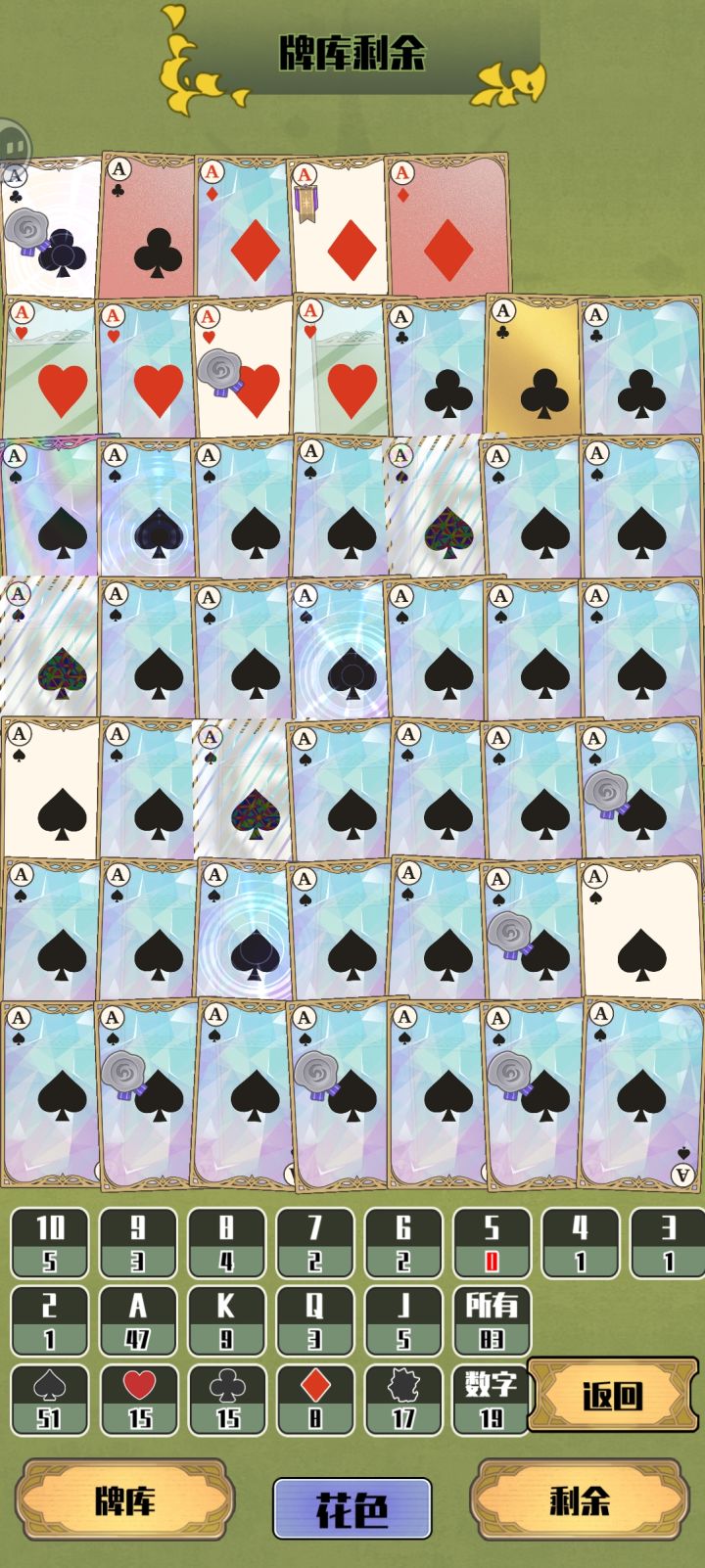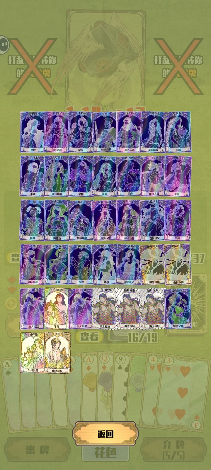 🃏抽卡体验:游戏抽卡机制很良心了,大部分抽卡都能抽出新卡来,不同花色也能抽的七七八,高阶卡也经常出现,而且卡面美工很好看啊,有种塔罗牌的感觉。