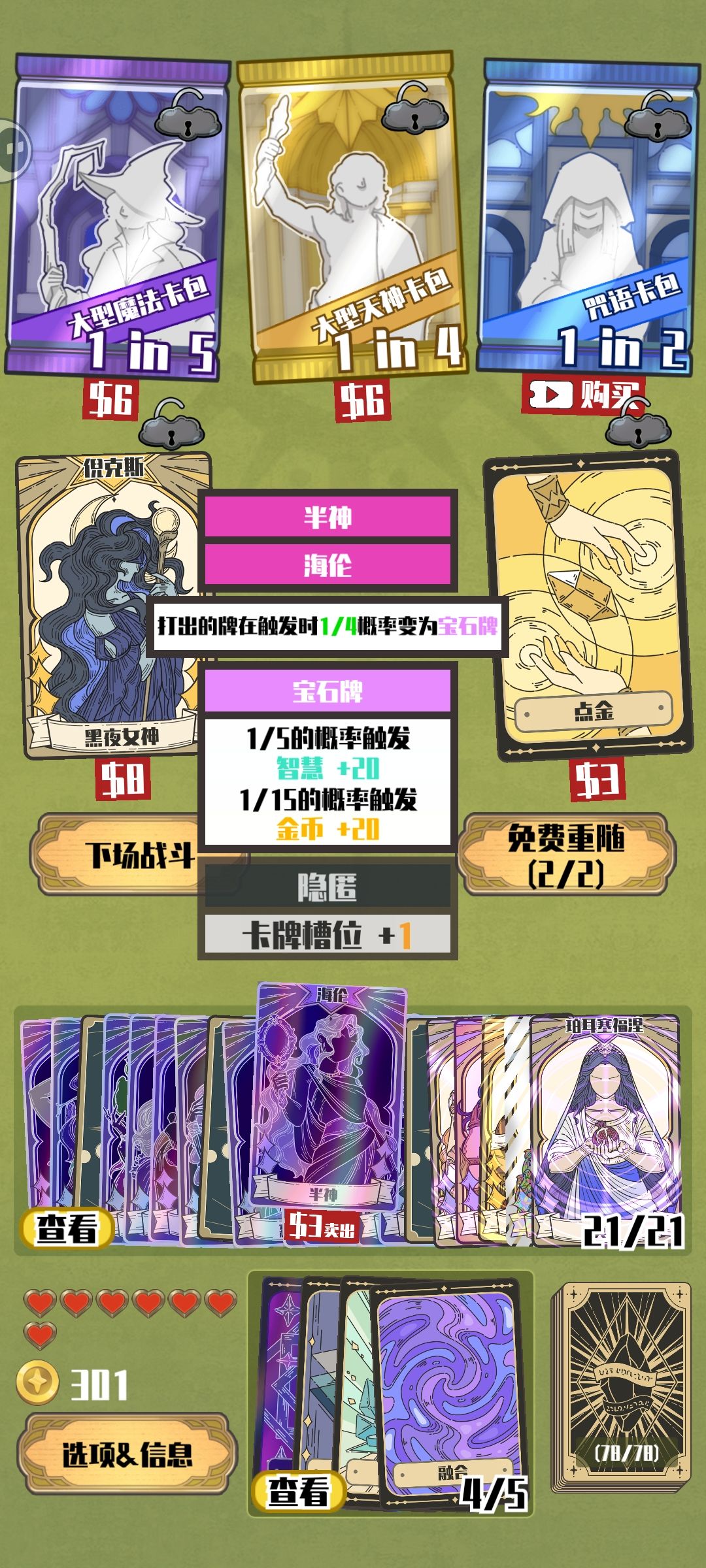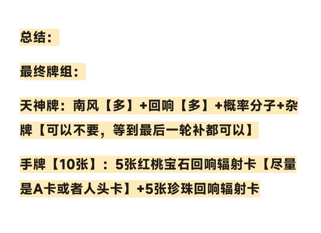 大概就是看了论坛大家的推荐之后根据自己的卡牌再进行了一点调整,给萌新提供一下思路,顺便说一下,这是推给没玩多久的萌新的,没有那么多隐匿卡面,没有那么多天神,那这套打法是比较轻松的,打15关也能轻松过,不放心加个医神也能过,如果是老油条有一堆隐匿卡,我的建议你喜欢啥就啥,怎么骚操作都行,隐匿咒语都不再是t0了 一楼一个推荐哈