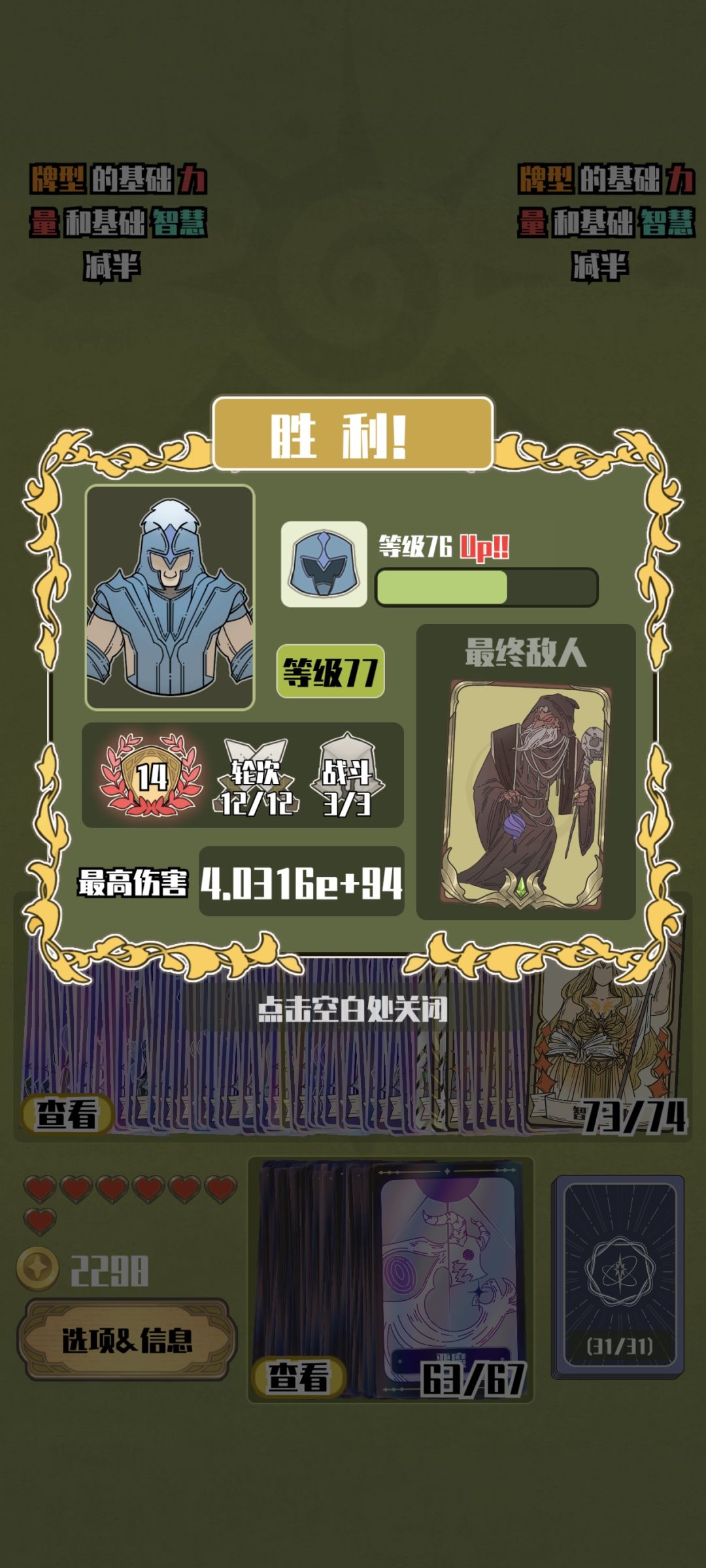 第七轮开始我牌组就成型了【图4】,10张天神牌【6南风+2回响】+10张手牌【5宝石回响+5黄金回响】,手牌辐射是第八轮才刷到。 第七轮:此时的伤害是:4.6e58【图4】 第八轮:此时的伤害是:1.89e100【图5】 第九轮:此时的伤害是:1.28e138【图6】 此时打一次小怪要将近五分钟[表情_捂脸哭][表情_捂脸哭] 第十轮:还没打,打了几个小时了,有点累,歇一会。 PS:不怕麻烦浪费时