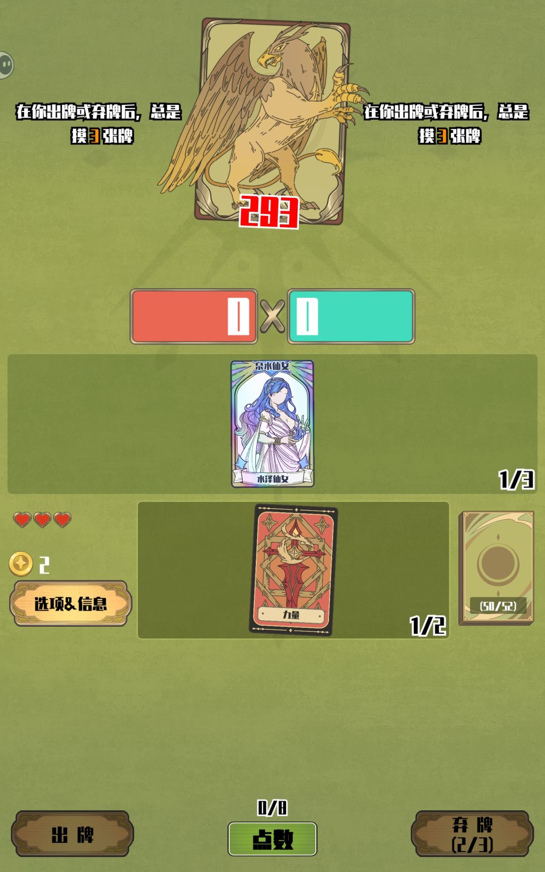 本游戏纯度最高、造价最低也是最基础的套件,唯一的要求就是将全部需要打出的牌转成红桃。通关配置:山岳女神-回声*n+南风神-诺托斯*n+命运女神-克罗托*1 回声南风因为要堆数量,所以建议隐匿。由于克罗托只要一张,所以只从本套路出发可以不要求隐匿(当然如果全没有隐匿也无所谓,在运营阶段找咒术牌贴隐匿也完全可以) *下面是很久以前的实操