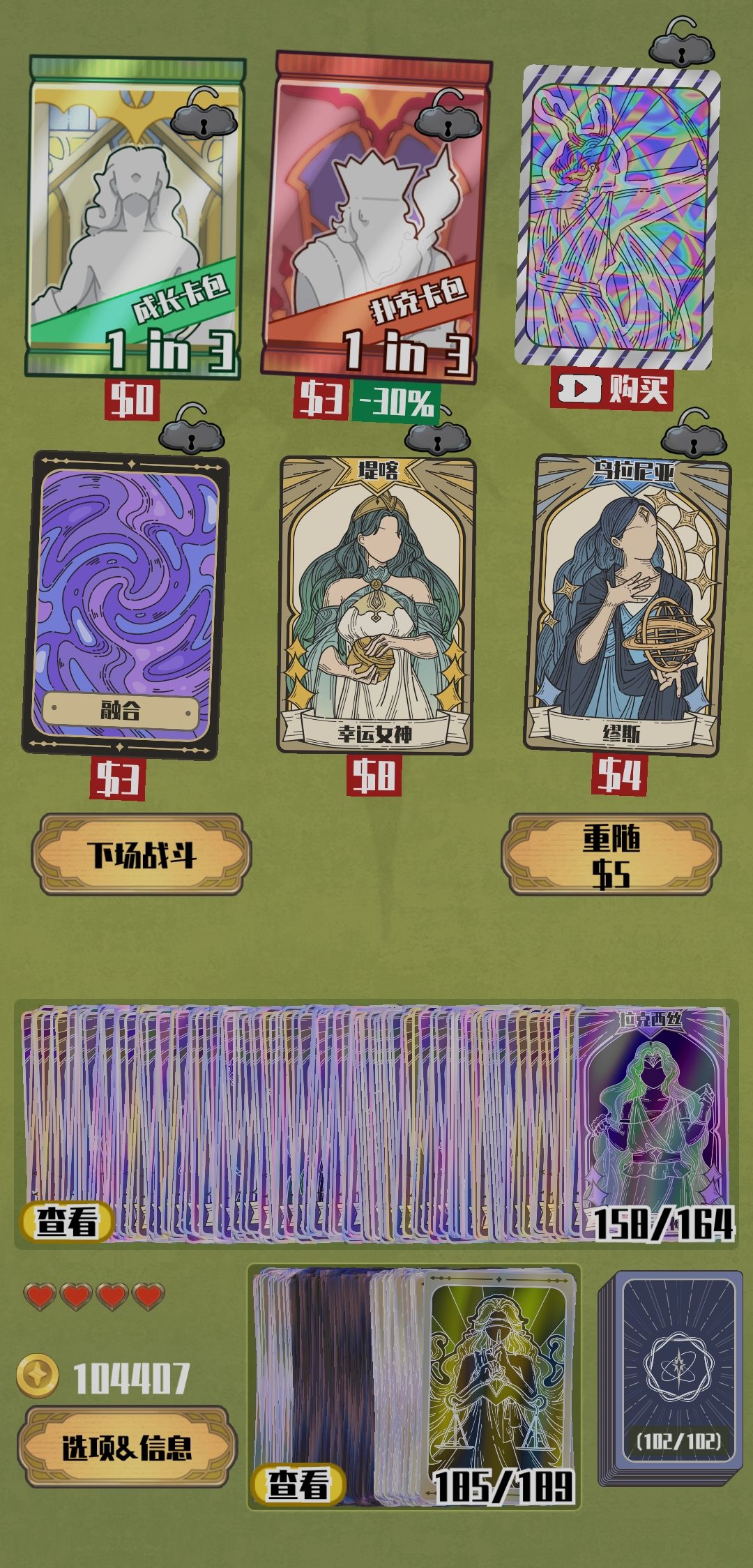 用经济流搞钱,把所有天神牌卖完后,再刷新商店会有已经买过但是是无特效的牌。 另外,这个时候宙斯有概率会触发但不删牌。#天神牌
