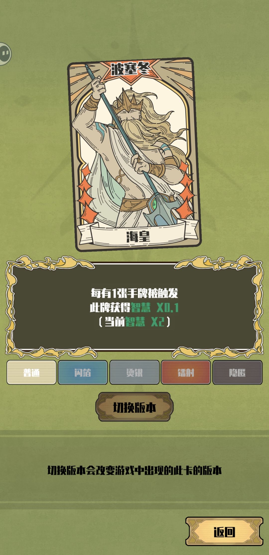 用经济流搞钱,把所有天神牌卖完后,再刷新商店会有已经买过但是是无特效的牌。 另外,这个时候宙斯有概率会触发但不删牌。#天神牌