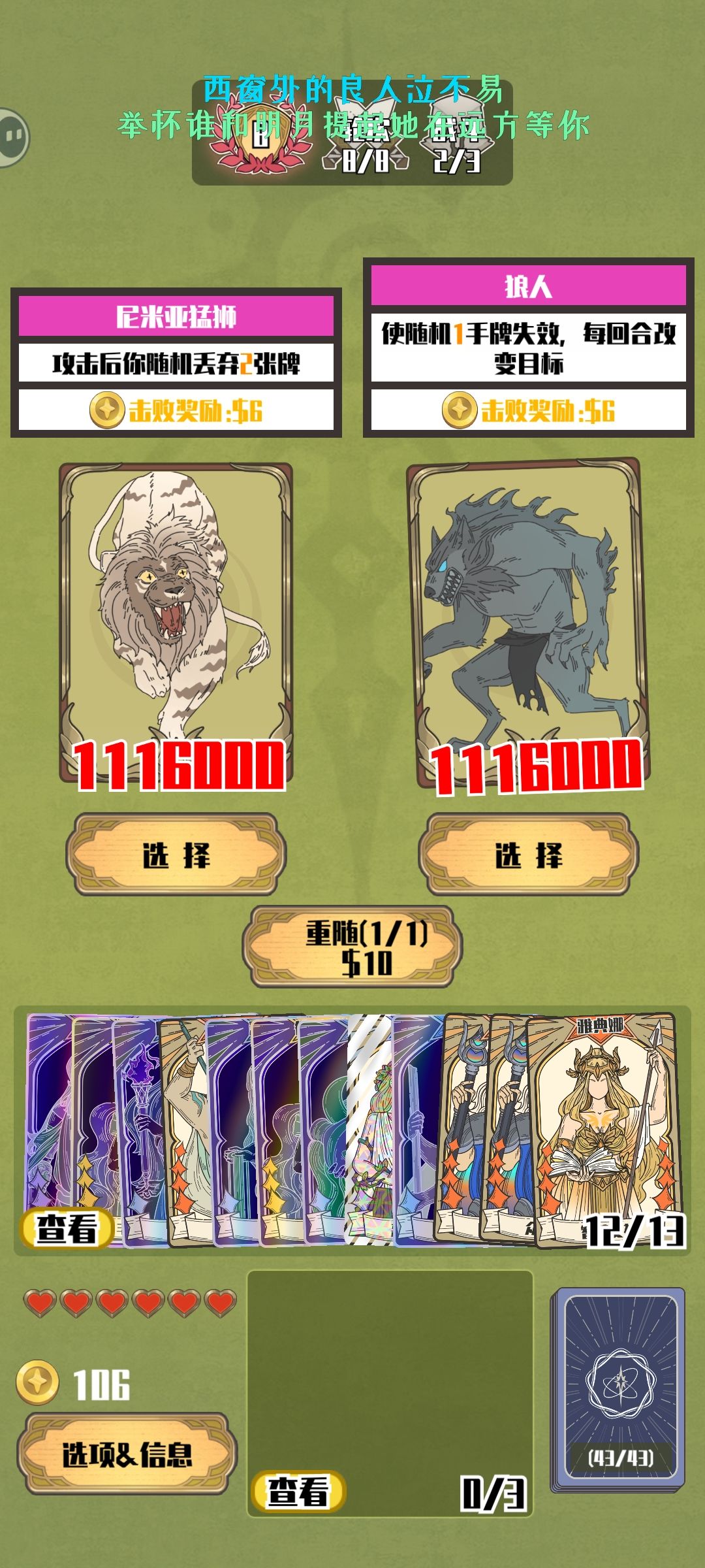 省流版看前二张图,按照顺序来最好 详细文字版: 核心是4张命运女神,1张医神,把血锁死,这样就能和超长血条的BOSS死磕了。 战斗主要是靠海皇叠珍珠牌,叠多了智慧多,伤害高,最后的BOSS也就一两下的事[表情_捂脸哭]。 重复的牌可以先锁一张你想要的,比如命运女神。然后一直刷新,可以刷出重复的,这个就要看广告了。我是刷出了两张,第三张太难刷了,就用咒语牌复制了一下。 开局一直刷这张命运女神,不要选