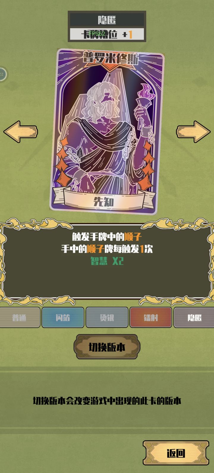 老普组合的上限,主要看老普和安菲的数量。组合如下:普罗米修斯(手牌里有顺子就触发伤害,每张都单独触发,大核心)琉刻(顺子可以隔一张牌触发,不用死命刷牌了)哈耳摩尼亚(4张牌就可以触发顺子,也不用死命刷牌了)安菲特里忒(重新触发手牌效果,相当于老普倍率牌,也是每张都单独触发)塔纳托斯(复制牌,只复制两张倍率牌,普多了复制安菲,安菲多了复制普)#天神牌#天神牌榜单#天神牌流派#普罗米修斯#天神牌攻略