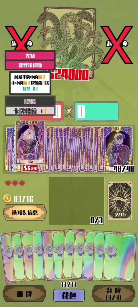 把把所有的卡都转成普通,然后用爱神和宙斯叠加疯狂刷普通卡为隐匿卡。宙斯卡,但是撕完卡爱神又让他复活。# #天神牌