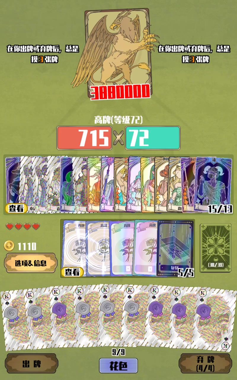 贸易之神搞经济,酒神复制A,多购买有加成的卡牌,海之愤怒打输出。其实肯定是混沌之神复制的越多越好。但是起步的时候复制了几个神,老是复制在贸易之神和海之愤怒上,把复制到的神删了后面再复制,也还是很难复制到混沌之神。后来觉得就这样吧,顺其自然。到第九轮的时候游戏实在跑不动了,于是我把贸易之神删了,酒神删了,打算强制收尾了。图片是现在第十局的情况。打到现在这局游戏也进行了十几个小时,打完这局估计这