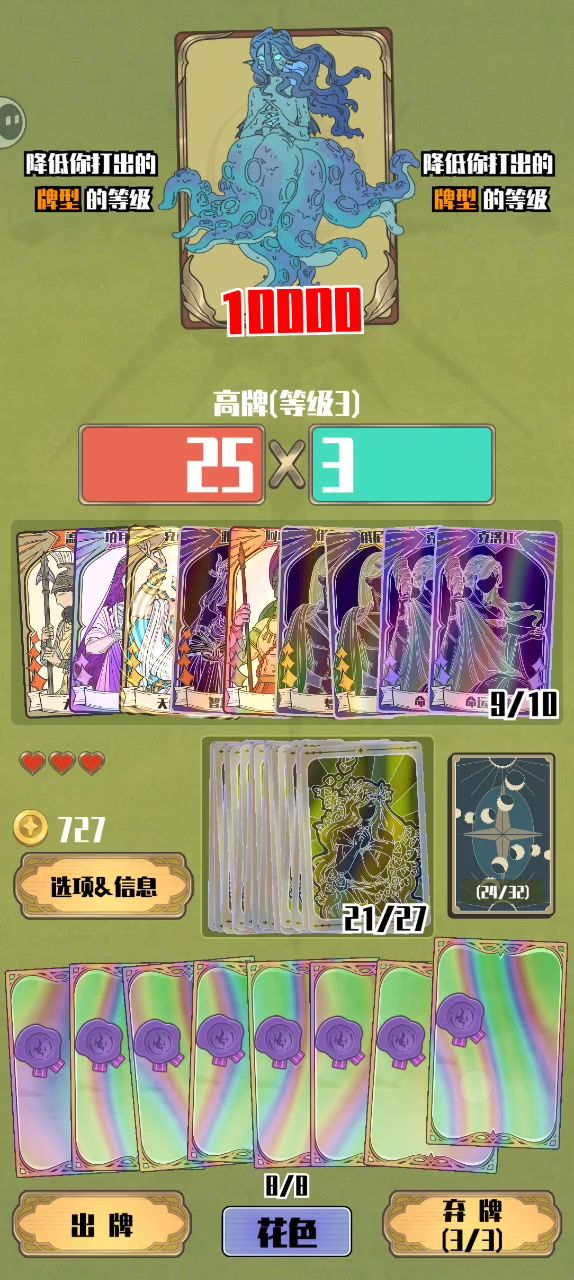 后面看大洋仙女–墨提斯跳钱有点爽。缺点是消耗卡多了很卡,比如不小心点到天神牌,然后回归到消耗牌区。希望能有个弹窗,点开排列天神卡,还有使用消耗牌的功能。#冥后