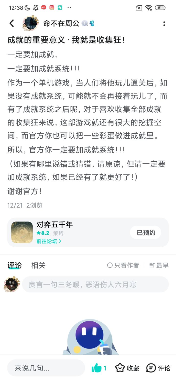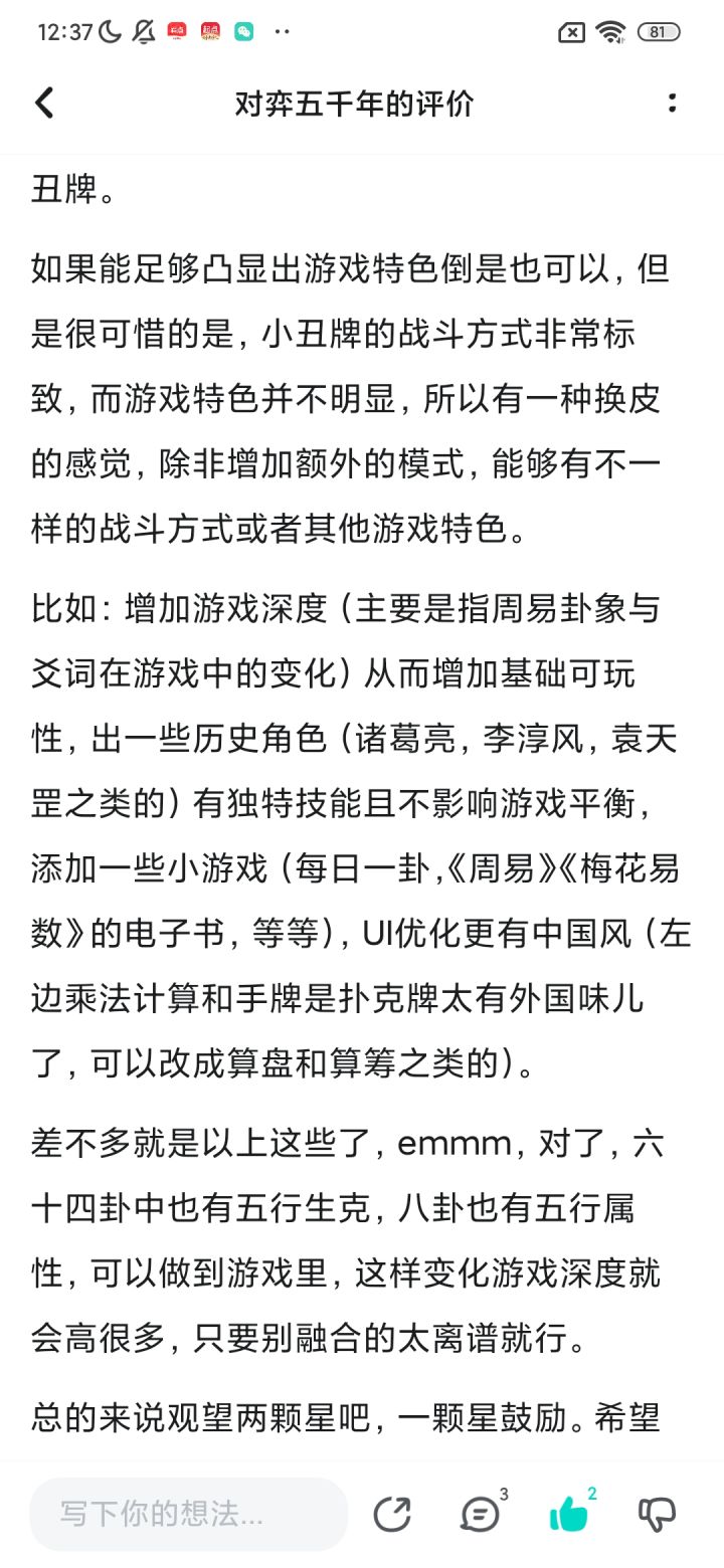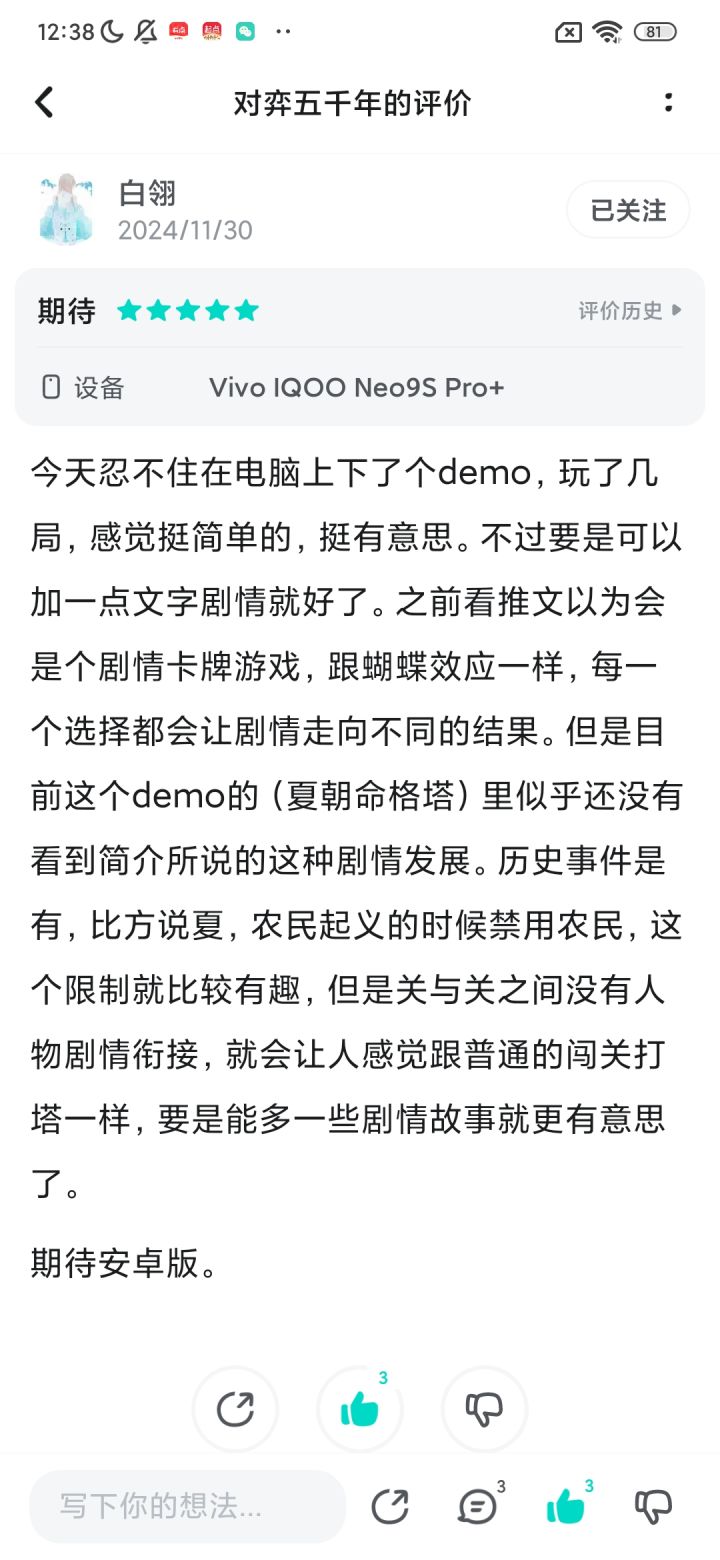 由于期待我们游戏手游和平板版本的玩家呼声较高,现在我们已经在TAPTAP开通了手游版的预约通道!蹲手游的玩家们可以在这里蹲蹲,有各种游戏需求的玩家也可以在这里发帖,让我们了解到大家的机型,方便做好屏幕分辨率等等的适配!一旦手游有进展,我们将在taptap开启手游版的试玩活动,感谢大家的每一份支持!《对弈五千年》是一款《易经》+中国历史+小丑牌like的卡牌游戏,将古代的天理命数的计算具象