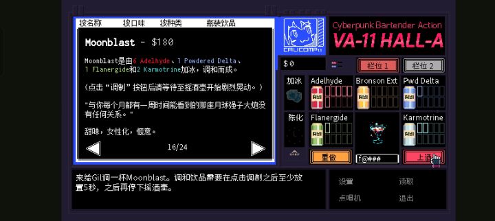 VA-11 HALL-A:Cyberpunk Bartender Action是一款关于赛博朋克-反乌托邦生活,并且以灌醉顾客为宗旨的~调酒师模拟器~ 你小子当然,剧情堪比陈酿!! 思考游戏攻略: 1.注意顾客需求:每位顾客会直接或间接地告诉你他们想要的饮品,仔细倾听对话是关键。 2.调酒配方:游戏中有多种饮品配方,熟悉它们能让你更快满足顾客需求。 3.影响剧情:调酒的选择会影响顾客的情绪和后续剧