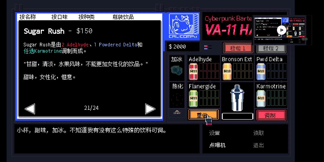 「赛博调酒师」正式到岗!!Va-11 Hall-A里的疯狂世界🥃