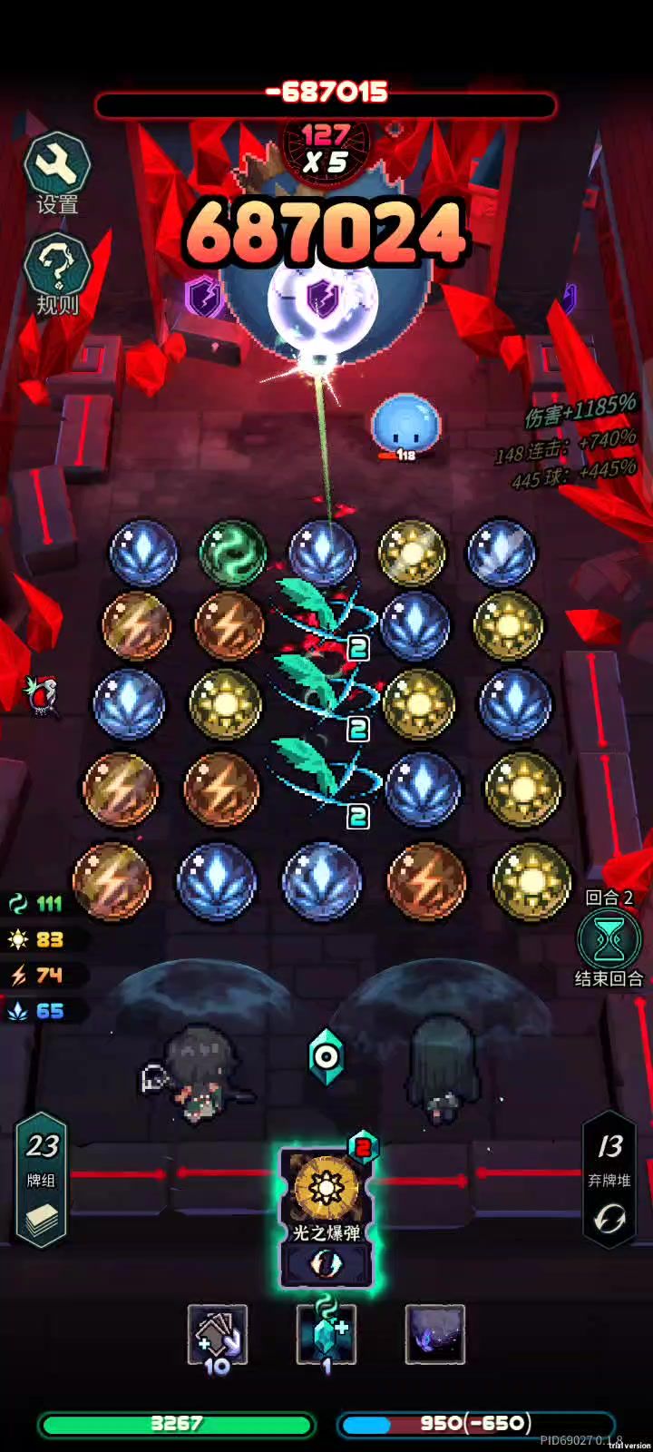 阵容:SSR暗女,R级暗卡眼镜男 暗女负责深渊铺场(深渊格子上的所有球爆炸都算暗属性伤害) R卡眼镜男是核心,涌现神技:闹鬼,完美搭配幽灵体系,(视频里的就是吃了3个幽鬼buff后的闹鬼打出来的伤害) 眼镜男4星后解锁新魔典可使用游戏内最强输出技能冰裂穿梭(基本上打出来就是秒)。 需注意游戏内冰裂穿梭的技能效果描述错误,实际效果为斜线范围内的5个球以及它们十字范围内的所有暗属性球都转化为冰爆弹。 魔