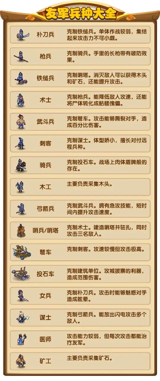 各位主公好呀!众所周知《众矢之地》里面有很多武将,同时也有很多兵种!他们能让我们在战场上所向披靡,战无不胜!那具体有那些友军兵种呢?小编整理了一下,快来看看吧!您觉得哪个兵种最强?底下留言做出您的选择吧!