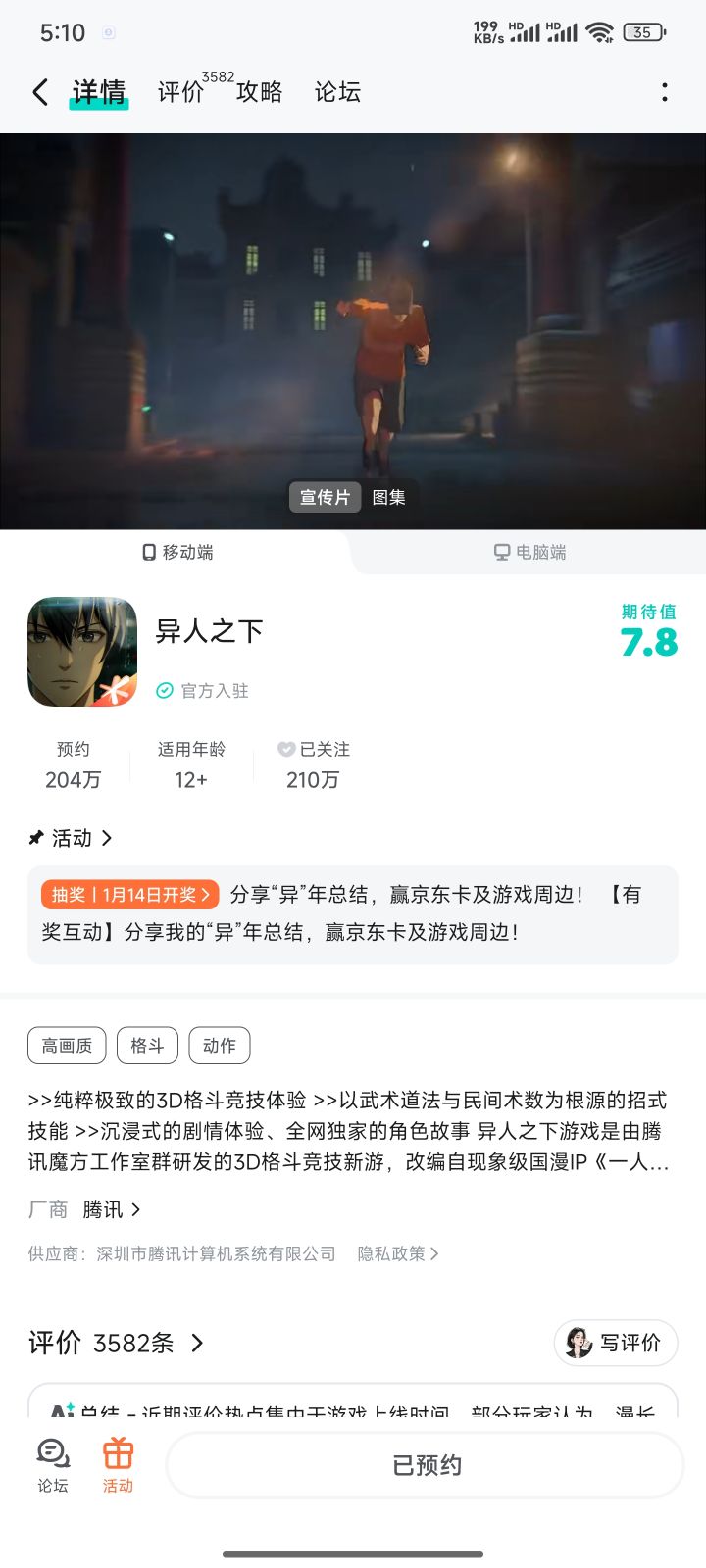 热度最高的手游!异人之下预约破200W!