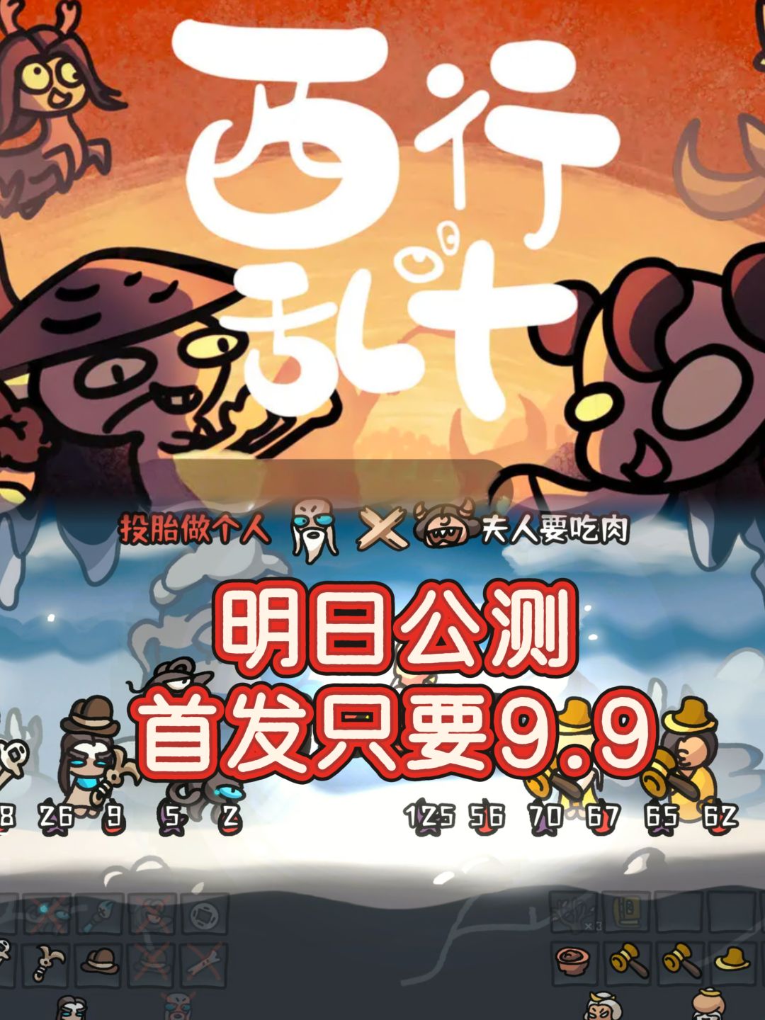 #新游试玩节 - 装备放置:将道具拖到上方格子放置,装备格放一件武器和一顶头盔来提升属性。 - 开始战斗:准备好后点击西行旗子开战。 - 商店操作:商店里可购买角色、装备和道具,不满意可刷新。 ✨️点个预约,关注游戏下次测试或公测有提醒!