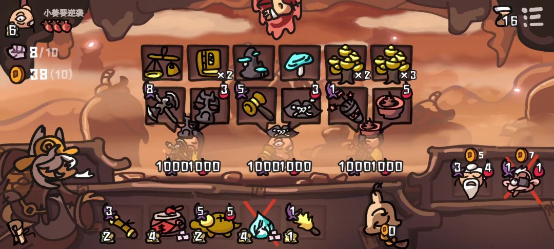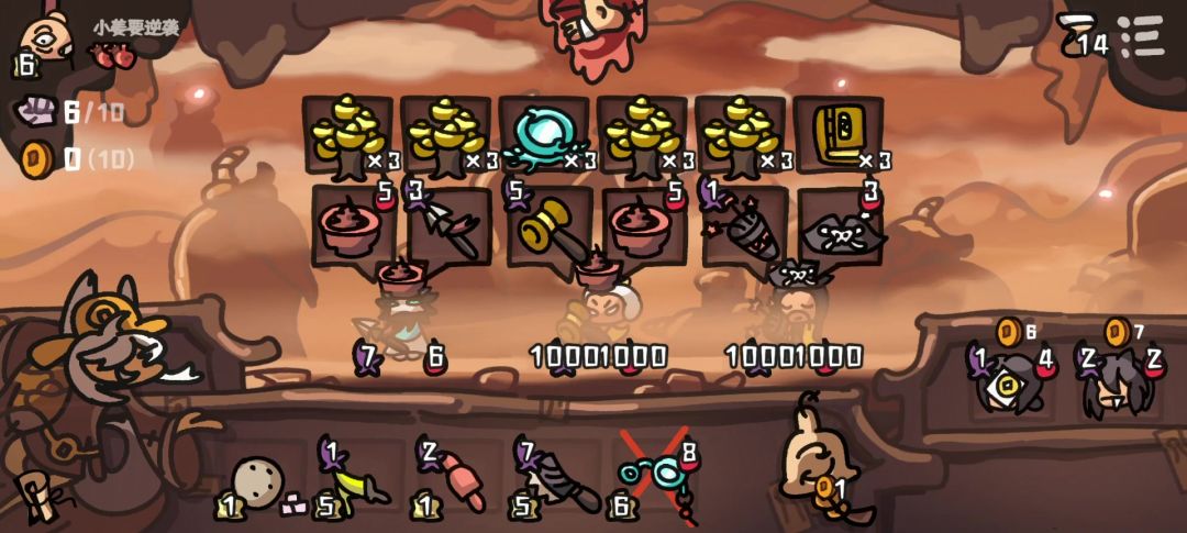 金币有上限(就是100) 核心装备)海盗帽子可以多的放不下的物品自动出售 元宝树三叠加,+3镜子,+3天平,+花盆(还有寿桃老头可以增加果实售价) 一元宝3元,一天平多加1元,单个售价6元 一棵树6✖️(1+3)=24元 24✖️3(3+2)=360元