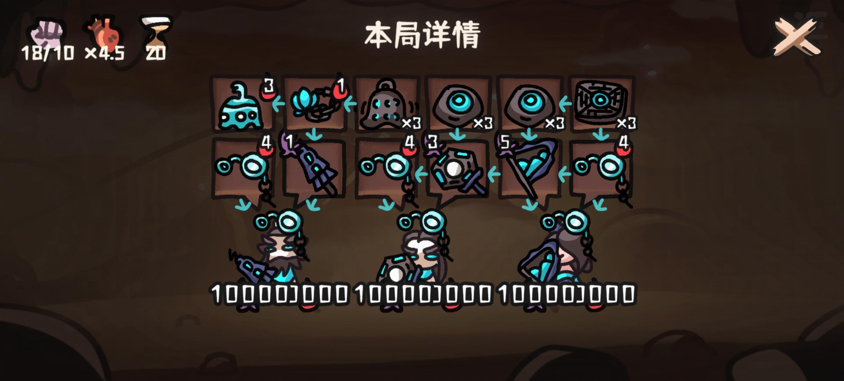 玩来玩去还是练气自由点,随意换人,这把周天锺18回合才出不过影响不大,这把主要输出是奔雷伞,加两个眼镜奔雷伞,第一个伞叠了4500+第二个眼镜伞叠了3500左右第三个眼镜伞叠了2600左右,开局投掷完就结束,完全不用打,人物完全是增加容错的,(这个玩法只有何仙姑不能换)图上是对局记录,雷锤700层足够了,本来也是要换伞的可惜没出,核心是铁锁横江头,背包里跟装备各一个,我的是最后一个眼镜变得,前期一