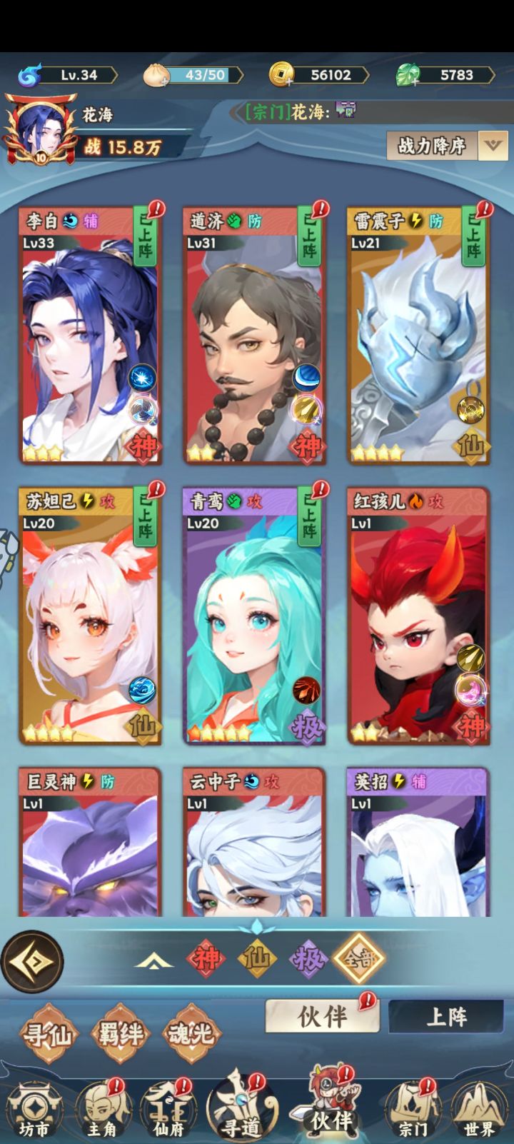 3. 伙伴系统:分为神品、仙品、极品。玩家可通过收集碎片进行升级和升星,上阵伙伴不仅能直接参与战斗,还能通过羁绊系统激活额外的生命、攻击等属性加成。