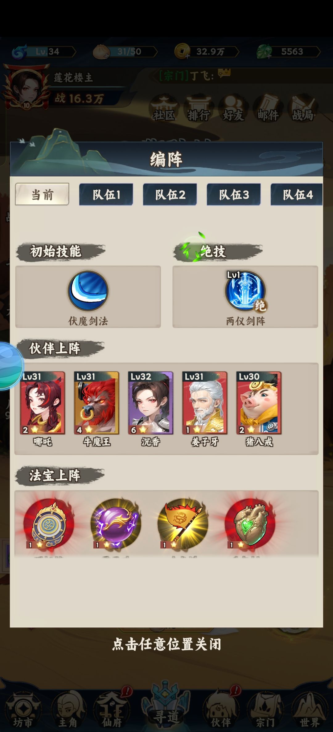 ✔阵容推荐:【目前只推到狮驼岭,32级,14w战力】 沉香(紫色易得,推图aoe主力,技能范围大,还有击退控制) 哪吒(首充可得,单点伤害高) 牛魔王(叠易火伤debuff) 姜子牙(控制+aoe) 猪八戒(全队加伤buff) ✔推图技能选择: 伏魔剑(用沉香可进化技能),主力输出技能,进图尽量选加大技能范围的宝物 离火剑(用老牛可进化技能),副输出技能。自动跟踪攻击,伤害可观,并且可触发混乱状态