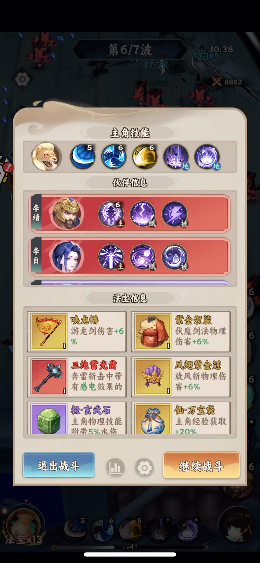 晒晒我的40级阵容搭配,奕秋+李白+李靖+后羿+狻猊,主要范围伤害靠奕秋和李白(李白潮湿加成奕秋),大小boss靠后羿,李靖和狻猊就是保命的了(李靖感电加成狻猊),自身首要的就是出狻猊加成版旋风斩,其次就是奕秋加成版诛仙剑阵,后羿加成版万剑诀,李白加成版烟雨剑,李靖加成版离火剑(混乱效果一定程度可弥补缺少姜子牙的遗憾),当然不可能都出来,看运气能出几个算几个,有旋风斩保底就行,其他升到几级算几级,