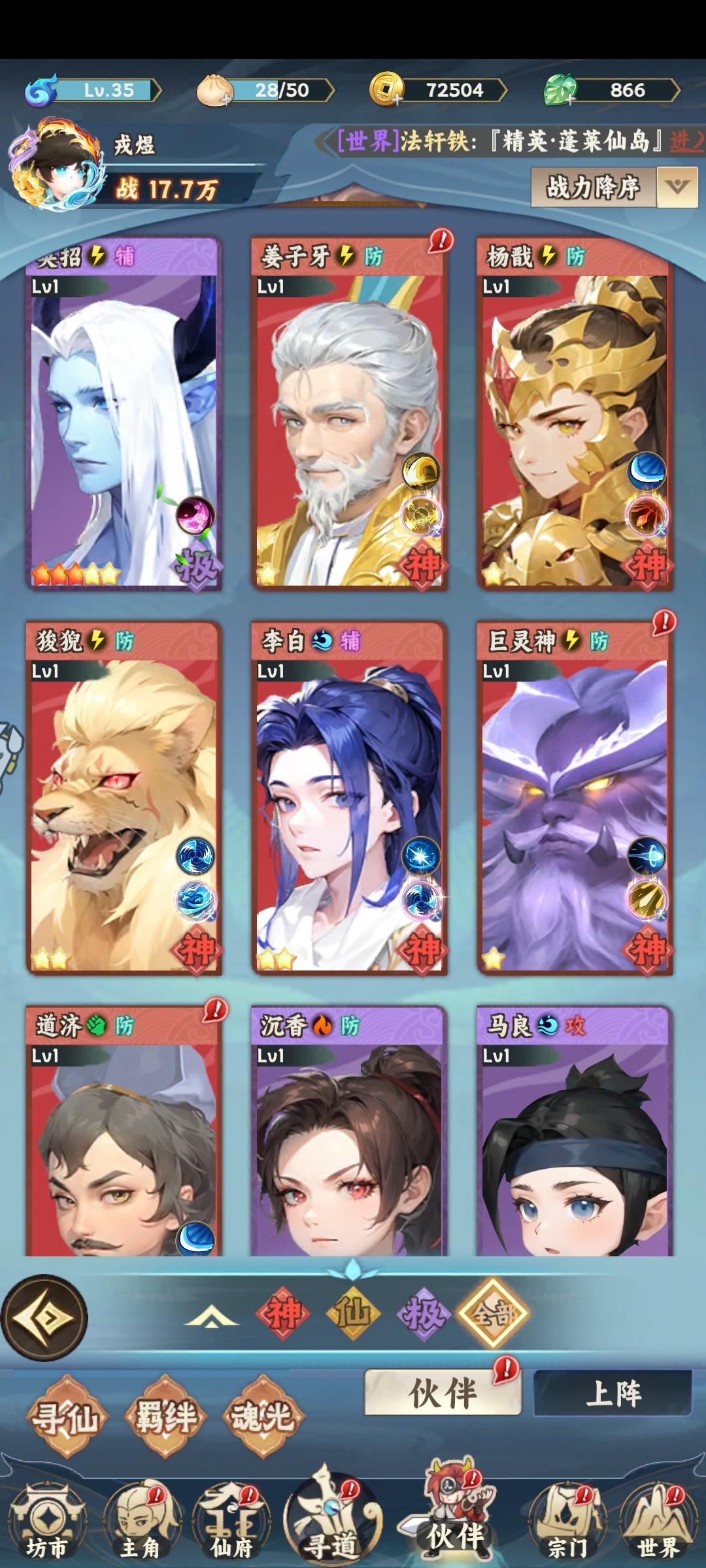 一、核心红线:首日绝对不碰这些 1. 拒绝乱升级: - 伙伴界面里,除李白外,青鸾、沉香、沙和尚等所有角色一律停级,哪怕有升级提示也不点,经验丹、升级材料全留给李白。 - 宝典界面的“一键升级”直接禁用!只针对性升级核心宝典,其他如灵山真经、剑仙宝录等,哪怕有升级条件也不升。 2. 伙伴只养李白: - 李白是唯一优先级,升星、升级、技能解锁全拉满,青鸾/沉香仅