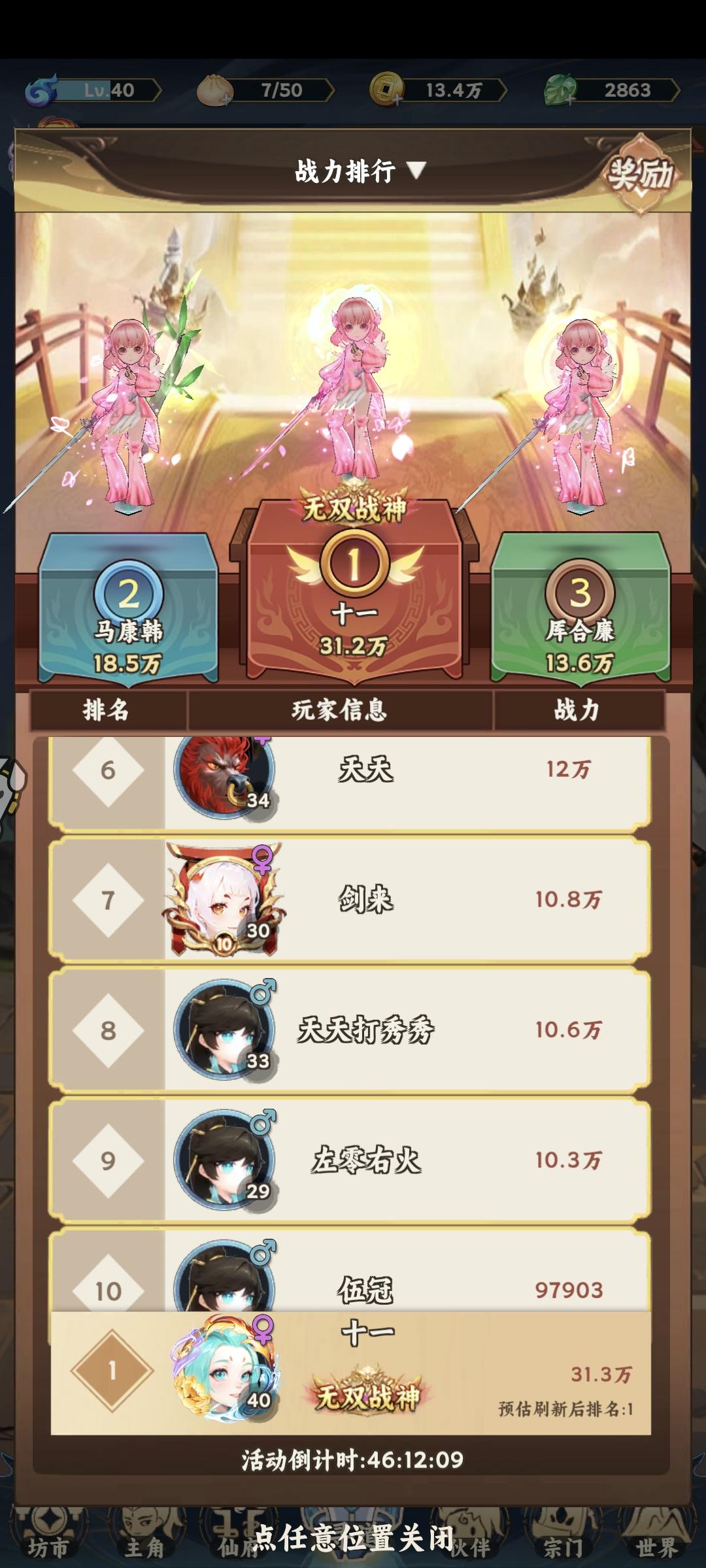 #游戏种草计划 开局仙玉不要乱用,只把每天体力买满,寻仙完成500抽即可获得2星弈秋+姜子牙,然后宗门任务开启,每天买满妖兽讨打,获得庄周,无双碎片升级2星,即可获得3无双。