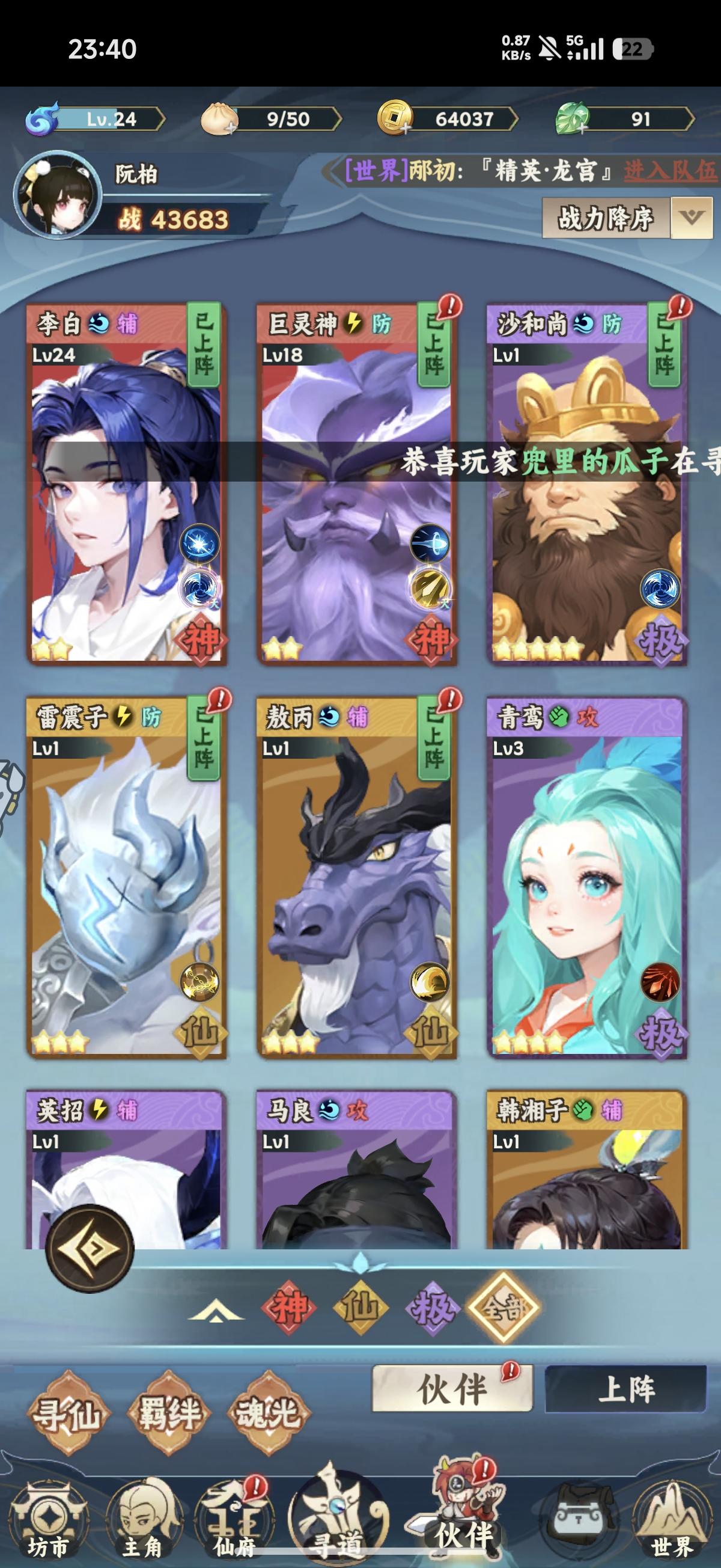 #游戏种草计划#大话蜀山你们都多少战力了 怎么玩啊,这个伙伴怎么搭配新手平民。