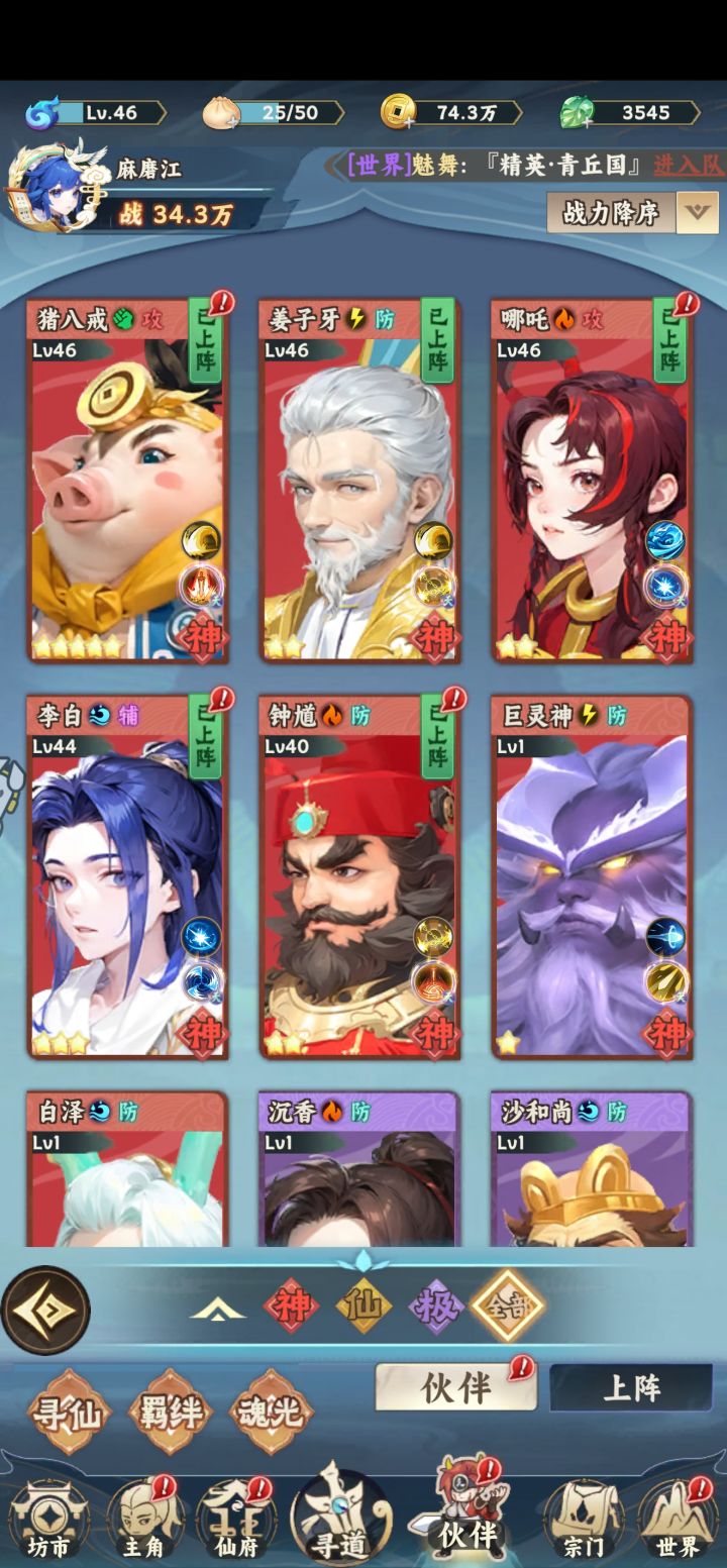 一、核心红线:首日绝对不碰这些 1. 拒绝乱升级: - 伙伴界面里,除李白外,青鸾、沉香、沙和尚等所有角色一律停级,哪怕有升级提示也不点,经验丹、升级材料全留给李白。 - 宝典界面的“一键升级”直接禁用!只针对性升级核心宝典,其他如灵山真经、剑仙宝录等,哪怕有升级条件也不升。 2. 伙伴只养李白: - 李白是唯一优先级,升星、升级、技能解锁全拉满,青鸾/沉香仅
