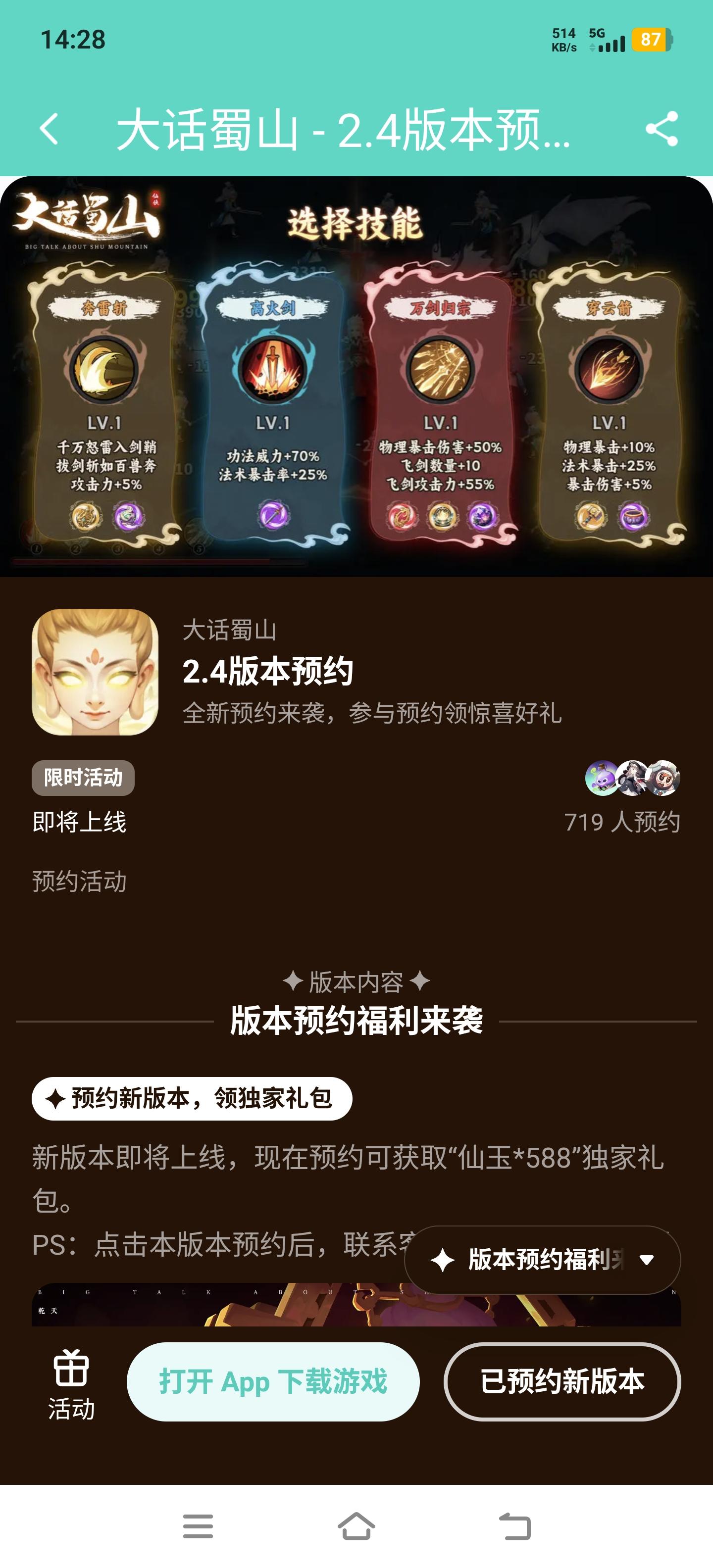 哈喽~好仙友儿十二月签到福利记得领取!!!📅十二月更新签到:➤点击即可跳转参与签到领取,查看活动详情领取对应奖励。大话蜀山最新超前版本已经上预约啦!参与成功联系客服可以领取仙玉等好礼哦~♦ ♦ ♦ 新版本预约 ♦ ♦ ♦ ♦参与方式:在本帖下方留言评论:游戏ID+超前版本预约成功截图,即可成功参与;示例:IDW23ACKFC+【显示已预约新版本截图】♦新版本预约直通车→♦活动奖