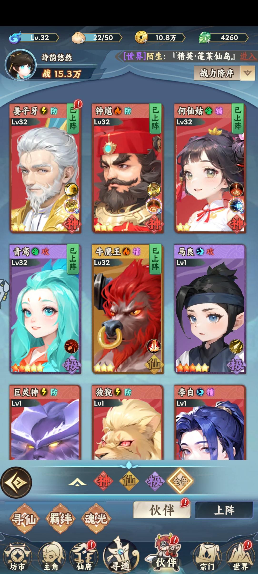 一、核心红线:首日绝对不碰这些 1. 拒绝乱升级: - 伙伴界面里,除李白外,青鸾、沉香、沙和尚等所有角色一律停级,哪怕有升级提示也不点,经验丹、升级材料全留给李白。 - 宝典界面的“一键升级”直接禁用!只针对性升级核心宝典,其他如灵山真经、剑仙宝录等,哪怕有升级条件也不升。 2. 伙伴只养李白: - 李白是唯一优先级,升星、升级、技能解锁全拉满,青鸾/沉香仅