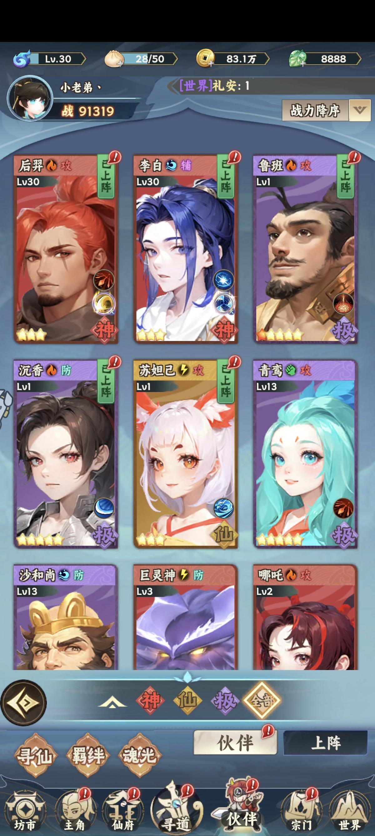 一、核心红线:首日绝对不碰这些 1. 拒绝乱升级: - 伙伴界面里,除李白外,青鸾、沉香、沙和尚等所有角色一律停级,哪怕有升级提示也不点,经验丹、升级材料全留给李白。 - 宝典界面的“一键升级”直接禁用!只针对性升级核心宝典,其他如灵山真经、剑仙宝录等,哪怕有升级条件也不升。 2. 伙伴只养李白: - 李白是唯一优先级,升星、升级、技能解锁全拉满,青鸾/沉香仅