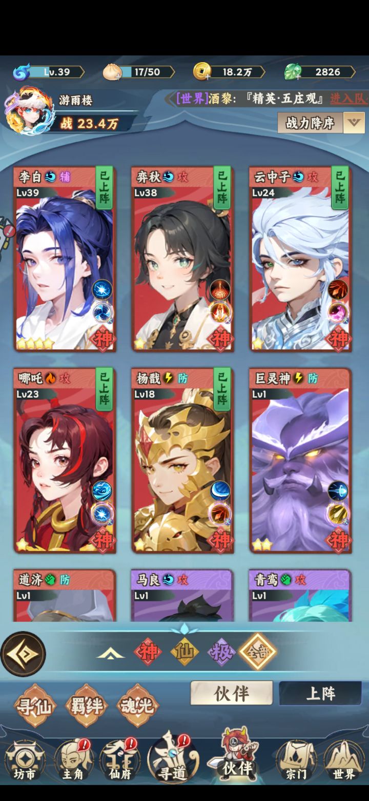 一、核心红线:首日绝对不碰这些 1. 拒绝乱升级: - 伙伴界面里,除李白外,青鸾、沉香、沙和尚等所有角色一律停级,哪怕有升级提示也不点,经验丹、升级材料全留给李白。 - 宝典界面的“一键升级”直接禁用!只针对性升级核心宝典,其他如灵山真经、剑仙宝录等,哪怕有升级条件也不升。 2. 伙伴只养李白: - 李白是唯一优先级,升星、升级、技能解锁全拉满,青鸾/沉香仅