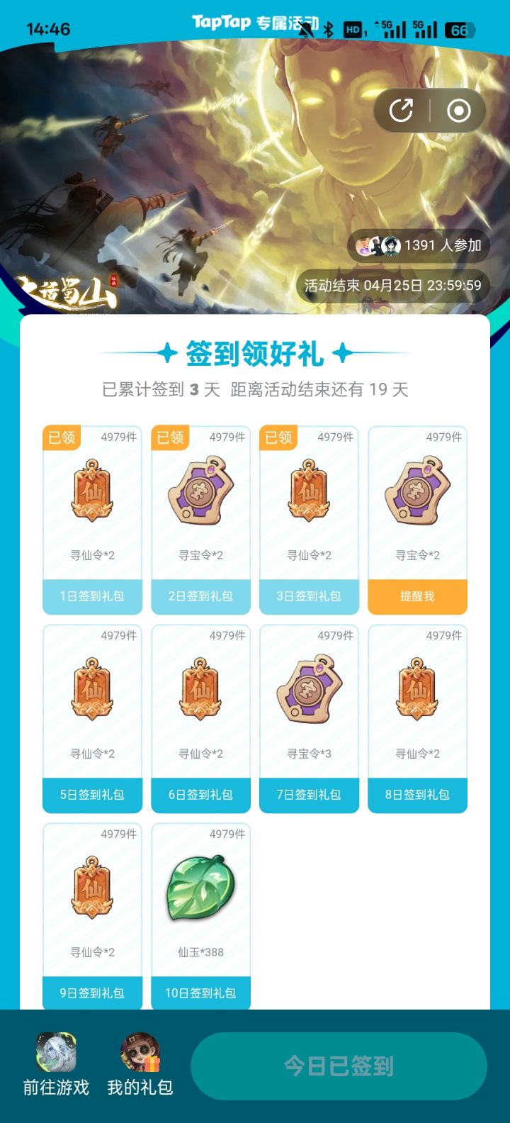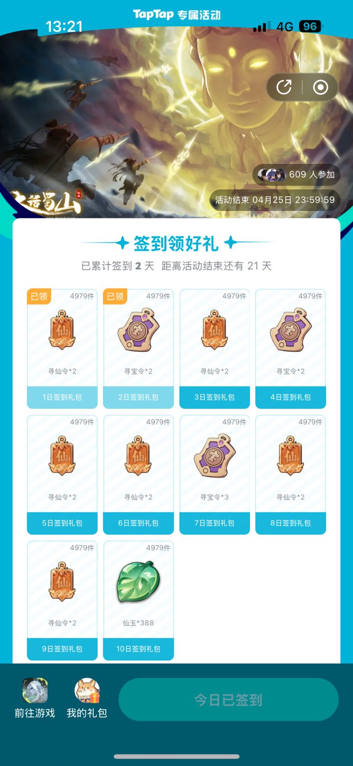 哈喽~好仙友儿📅四月签到:tap专属4月签到活动正式上线,参与签到领超多仙玉、寻仙、寻宝令!!【活动时间】2026-04-03 00:00:00 至2026-04-25 23:59:59【参与方式】➤,查看活动详情领取对应奖励。🎁签到福利加码放送:【参与方式】在本帖评论区评论分享:游戏ID+签到截图即可成功参与;【活动奖励】 寻仙令*10+修炼丹*100(评论后联系客服即可领