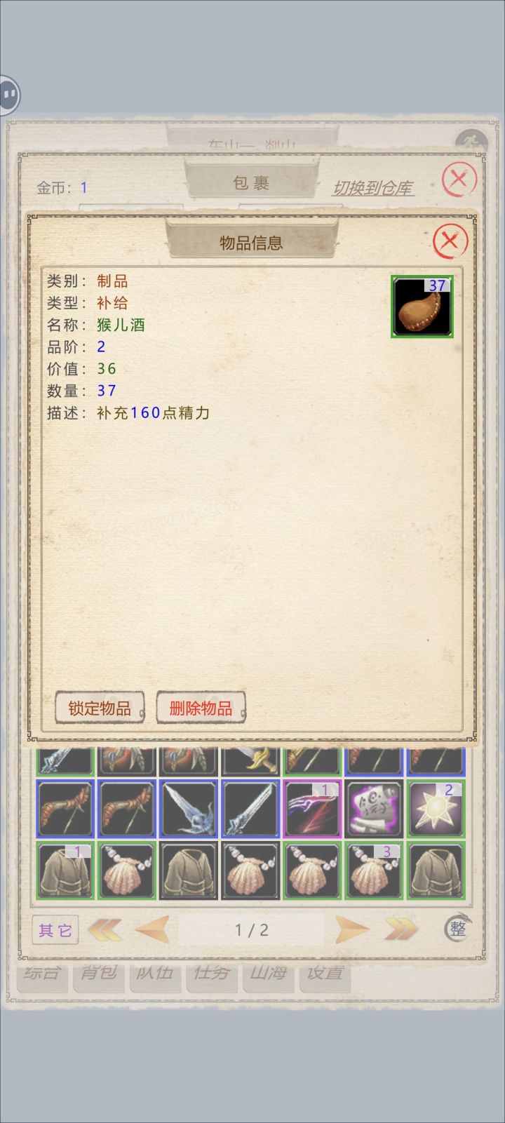 好烦, 背包里有猴儿酒,咋补充精力? 连个使用键都没设