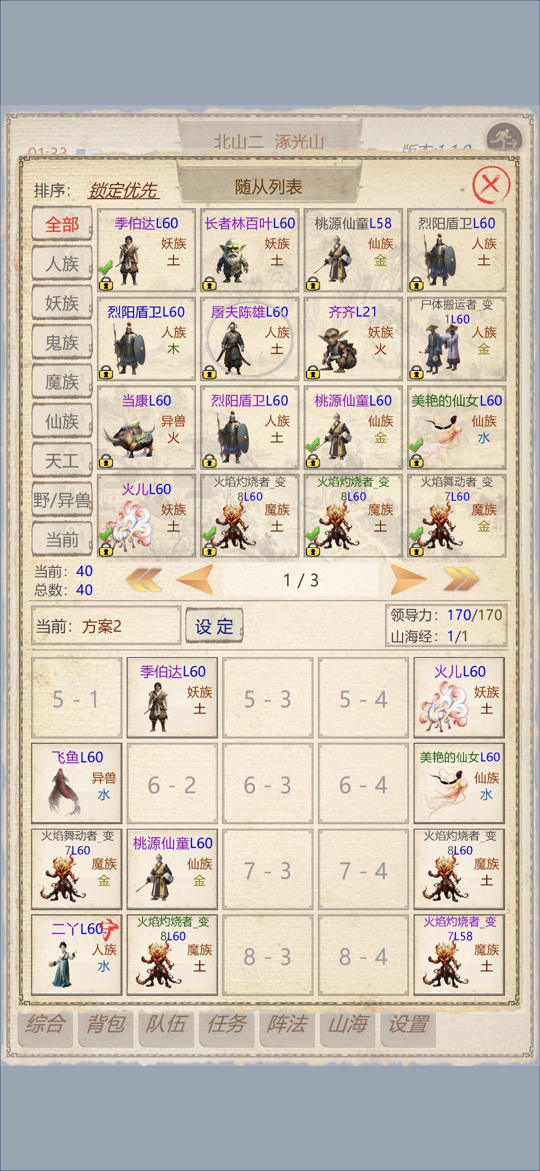 滥觞:本流派源于山海一的红莲流,只不过相较于一代,二代添加了施法动作的设定,导致召唤会延后甚至可能会被打断,整体伤害会没有一代来的那么震撼。 阵容:盾主,飞鱼,四火魔,仙女,火儿,二丫加一仙童。 阵容详解:1.尽量用盾主而不是后排主角,这样可以不必用盾卫而留出一个坦位的领导力。而且盾主很强力! 2.飞鱼乃最强异兽,无需多言。兼顾奶坦攻于一身。 3.仙女乃必须,品质无所谓。一方面其优秀的特技可以为阵