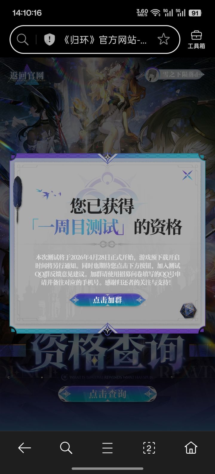 论坛内有资格的小伙伴在申请加入测试群的时候记得填写问卷中所填的微信号QQ号宝子们核对一下你填写的信息和资格渠道是否正确 如果是TapTap获得的资格请加入TapTap测试群哦 官网查到的资格默认显示的群聊是官网渠道群聊