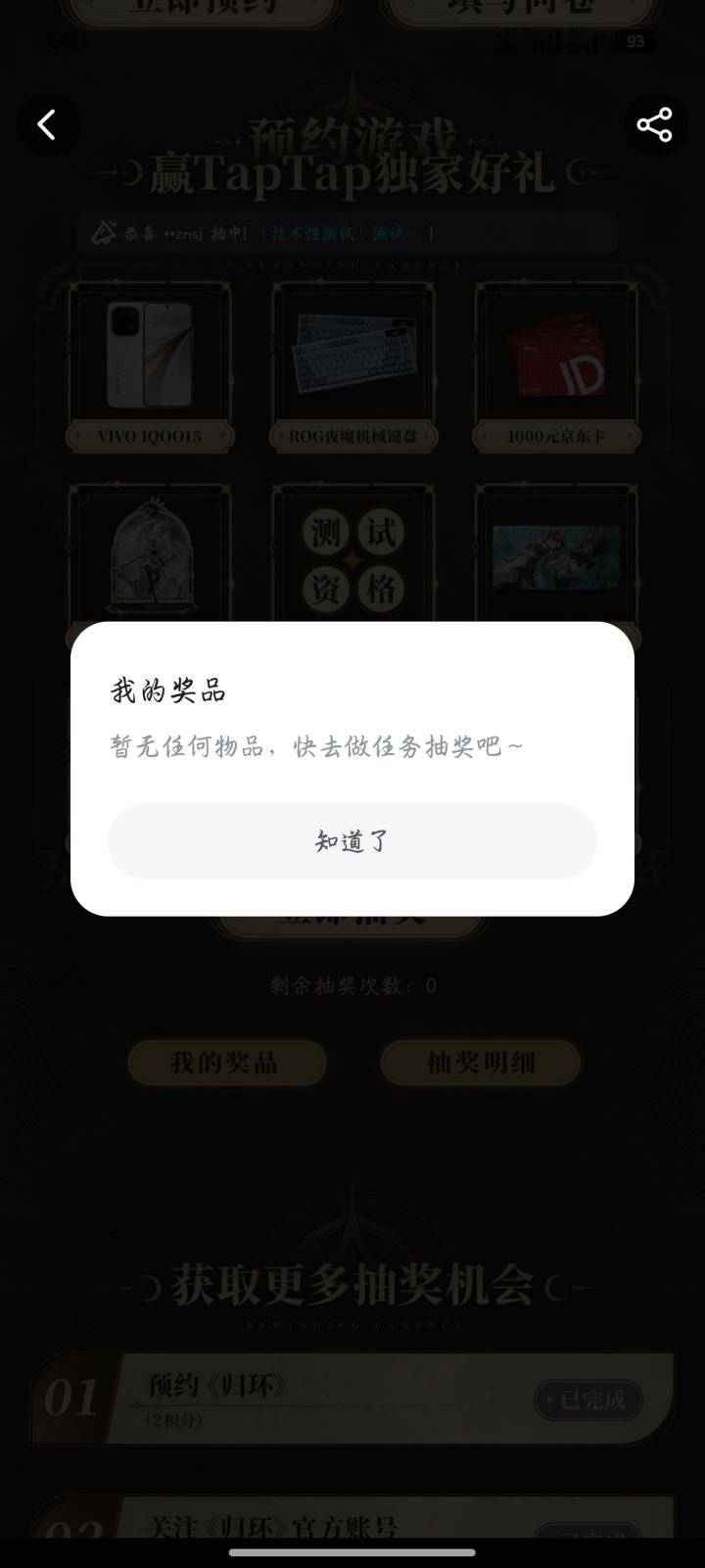 虽然啥也没中,测试资格也没有,但我还是疯狂暗示问卷已填