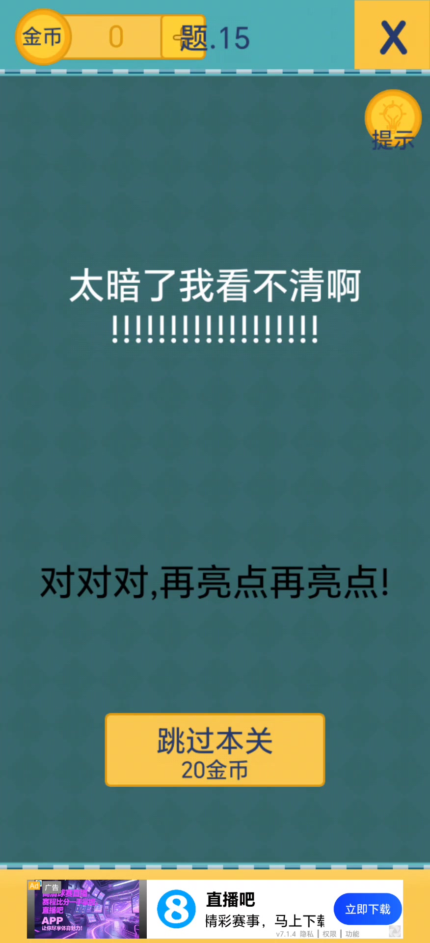 ㅤ一个你玩着玩着就会不自觉的喊出游戏名的游戏,不少关卡答案绝对让你惊呼:"居然还有这种操作!!" 游戏关卡有一些难度,但是只要你跳出思维的陷阱,一切都会变得简单。 ㅤ 要想通关,你需要记住以下几点: ㅤ 1.不要相信题目字面的意思 2.不要相信题目字面的意思 3.不要相信题目字面的意思 重要的事情说三遍!!!