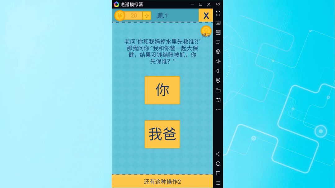 ㅤ一个你玩着玩着就会不自觉的喊出游戏名的游戏,不少关卡答案绝对让你惊呼:"居然还有这种操作!!" 游戏关卡有一些难度,但是只要你跳出思维的陷阱,一切都会变得简单。 ㅤ 要想通关,你需要记住以下几点: ㅤ 1.不要相信题目字面的意思 2.不要相信题目字面的意思 3.不要相信题目字面的意思 重要的事情说三遍!!!