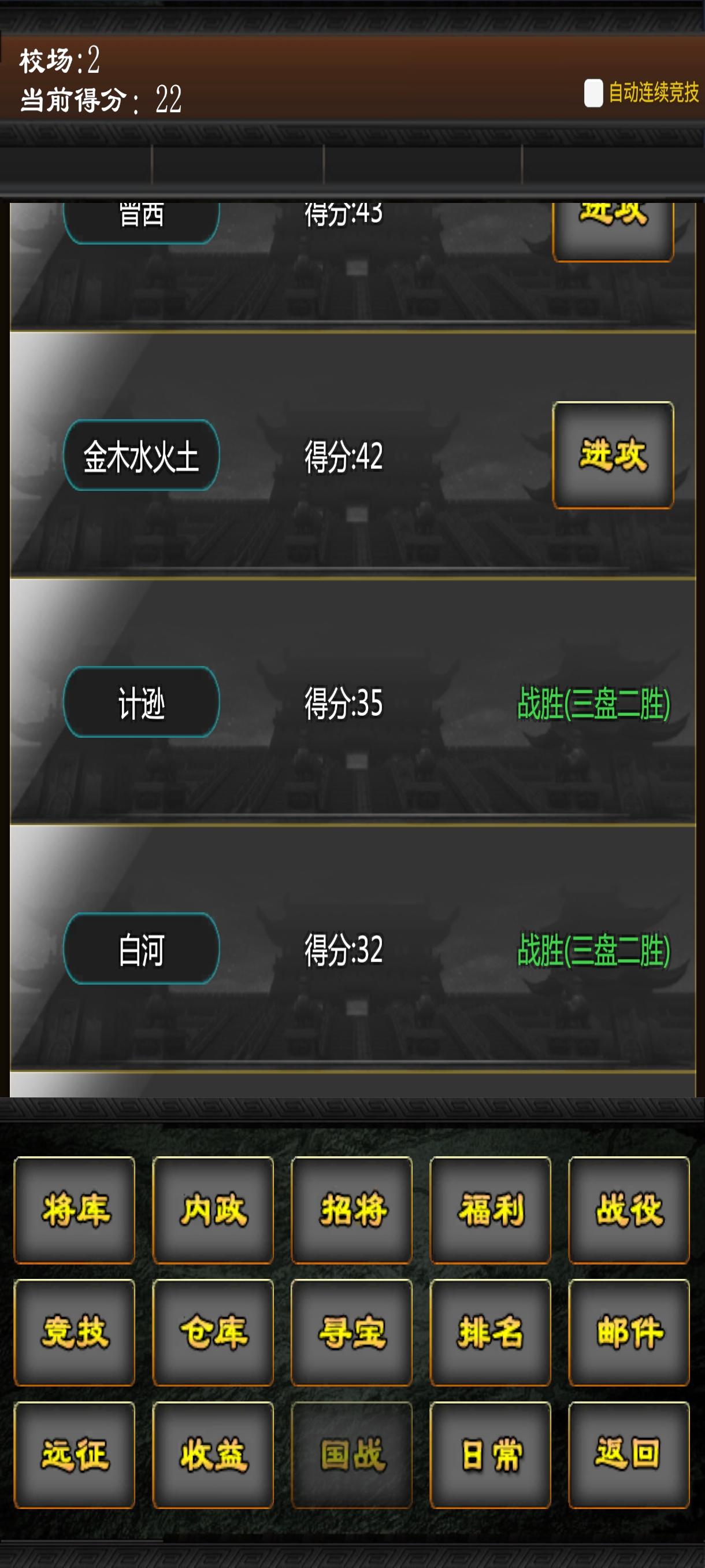 进游戏先把所有广告看完应该是vip2 跟随主线任务到15级发个帖搞到自选武将,运气好能抽个曹仁,选个吕布或者马超前期刷图是真的舒服。到了20级左右就得想办法挂机了,资源方面前期尽量少用。因为如果运气不好很难打得过掉落套装的武将,我现在就卡在这就一个4星典韦还能看,别的基本都是1星0星(打名将给的),每天古城寻宝和副本一定要刷,给的经验很多。目前还没有刷到套装属性还没弄懂,最重要的奇遇的副本活动尽量