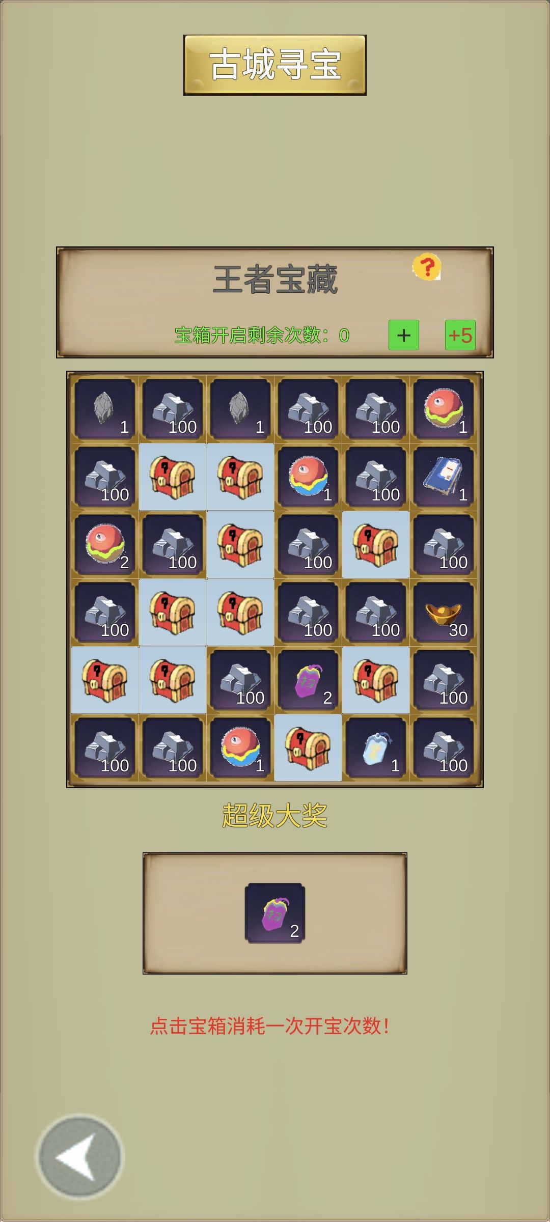 寻宝是获取材料很重要的活动,最后的次数不够,花30元宝补,建议把关底拿到,得到2枚扫荡令,可以多做2次副本,建议元宝或装备箱,期间还可能得到体力丹、全属性丹等宝物,是很划算的。