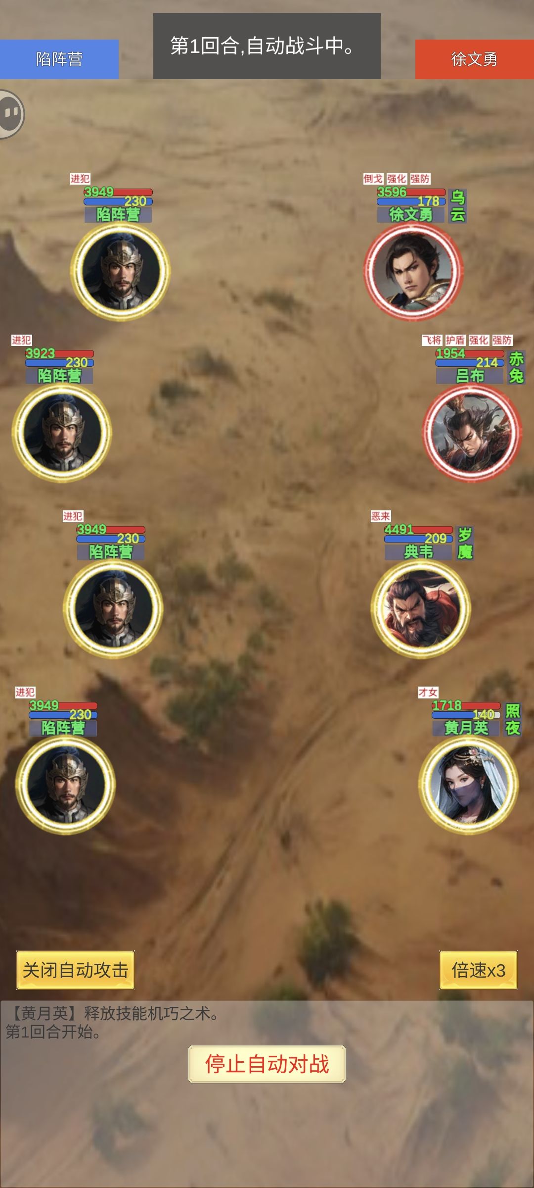 黄月英1速,加我方2人伤害,减2人受到的伤害 吕布2速,主要输出 剩下2人补伤害。 而且还有一定的概率翻车