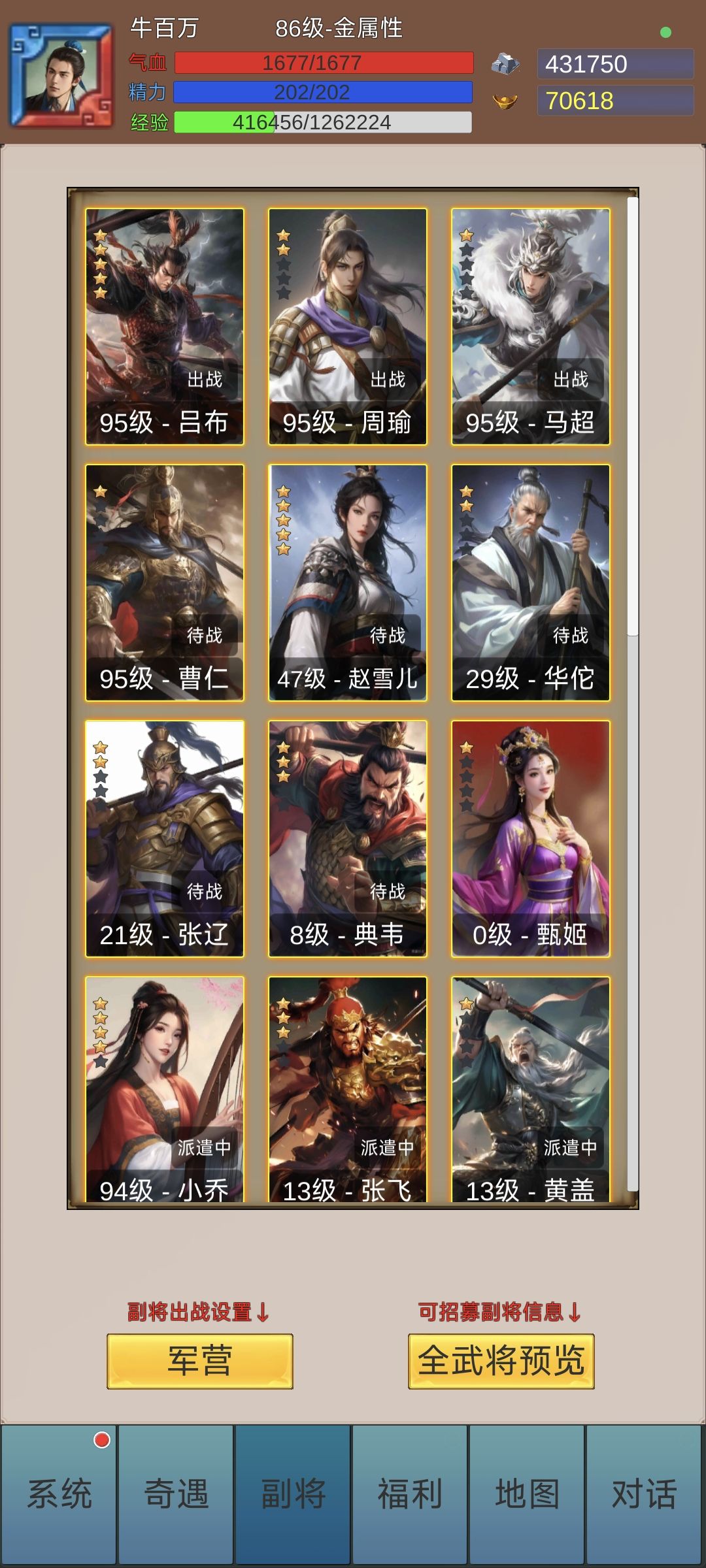 开局角色创建:五行选水,输出副将火属最多,水最有优势;属性优先速度>精神>攻击(谋略)>血。 角色技能选择:进游戏主线学技能谋略群体技能后期强,单体物理前中期好用,想玩久一点选谋略群伤,开局这个谋略群伤技能是真的弱,三十之前基本没有加谋略的装备,要套装麒麟套才开始崛起,可以选择人员不放技能属性加攻击血量过度,后期再洗属性点。图五十面埋伏就是技能效果,后期配合吕布马超貂蝉一回合秒全部。 资源:一堆兑
