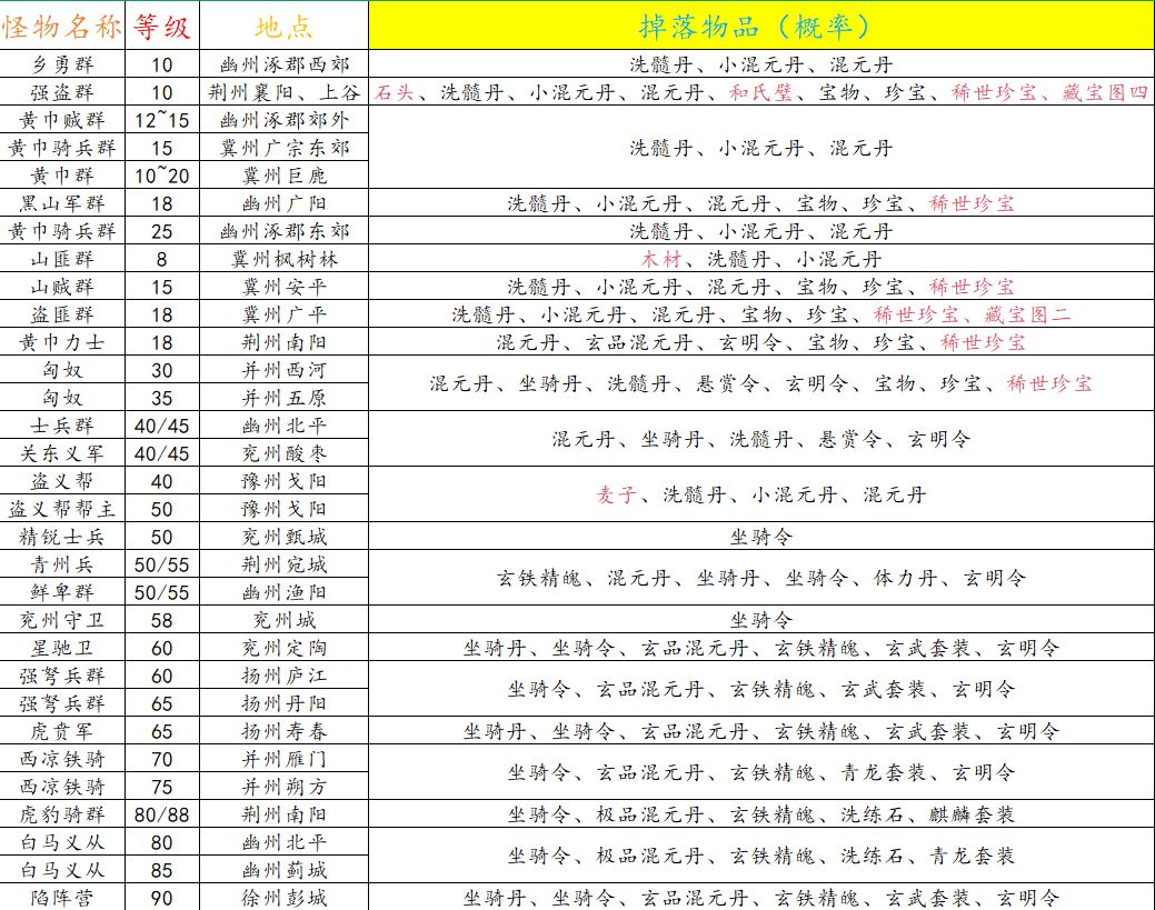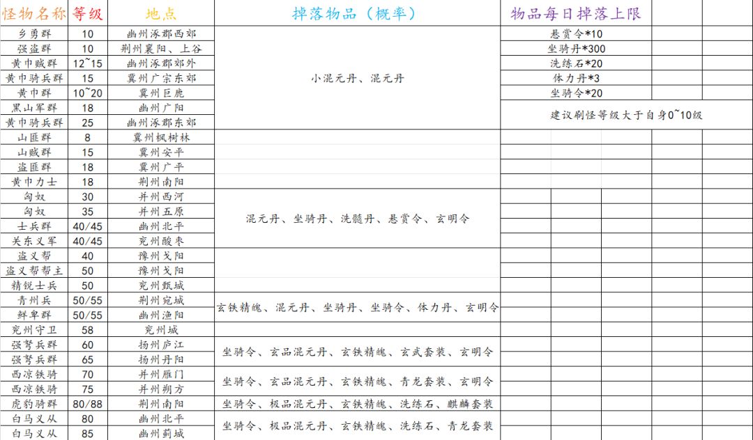 龘龖三国练级攻略,怪物所在位置和掉落物品