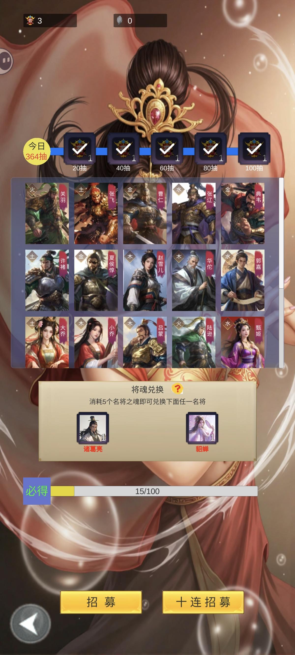 开局角色创建:五行选水,输出副将火属最多,水最有优势;属性优先速度>精神>攻击(谋略)>血。 角色技能选择:进游戏主线学技能谋略群体技能后期强,单体物理前中期好用,想玩久一点选谋略群伤,开局这个谋略群伤技能是真的弱,三十之前基本没有加谋略的装备,要套装麒麟套才开始崛起,可以选择人员不放技能属性加攻击血量过度,后期再洗属性点。图五十面埋伏就是技能效果,后期配合吕布马超貂蝉一回合秒全部。 资源:一