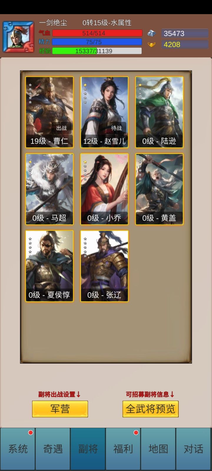 开局抽曹仁很好用,前期加点加体质好过图,慢慢养成体验很好