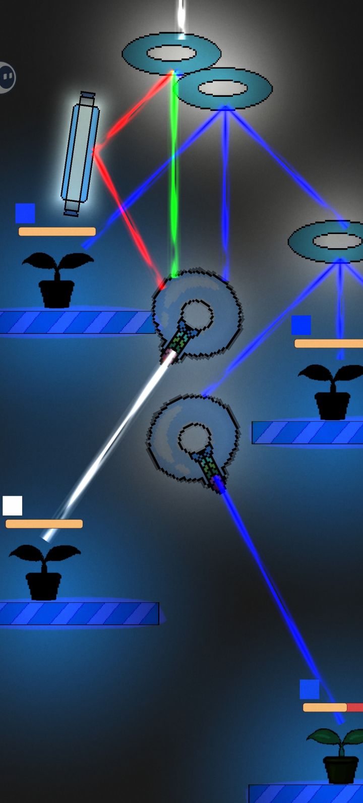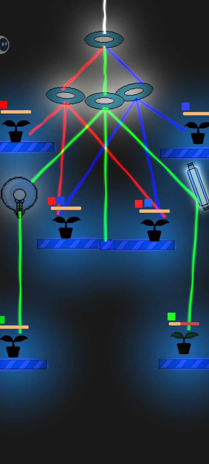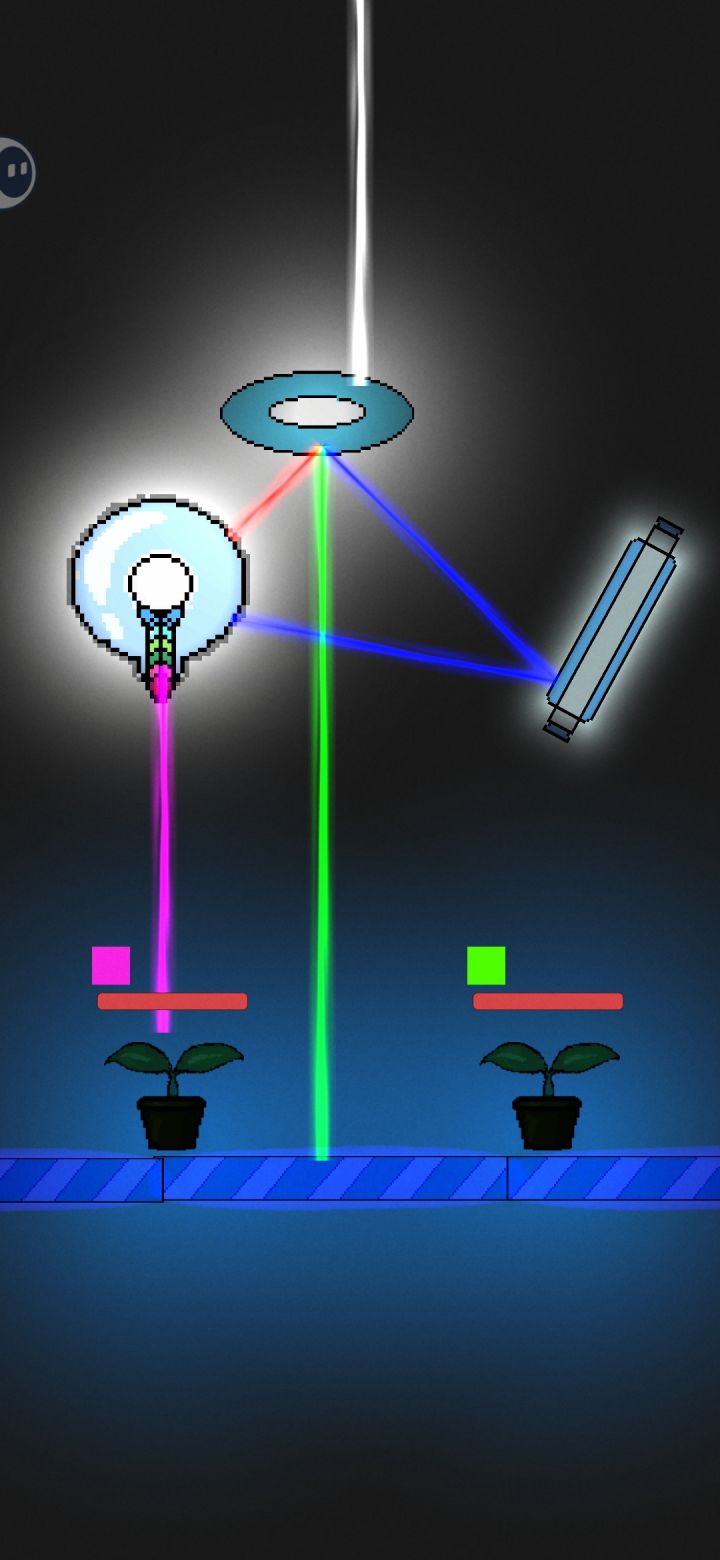 利用光学原理进行游戏的休闲小游戏,规则上需要对光的原色组成有一定了解,基本上算小学内容。植物需要特定颜色的光进行照射,最初只有白光和平面反射镜。随着难度提升,各种工具出现差异化效果,比如散射镜片与合并镜片,以及植物颜色需求增多,难度会呈指数级增加。