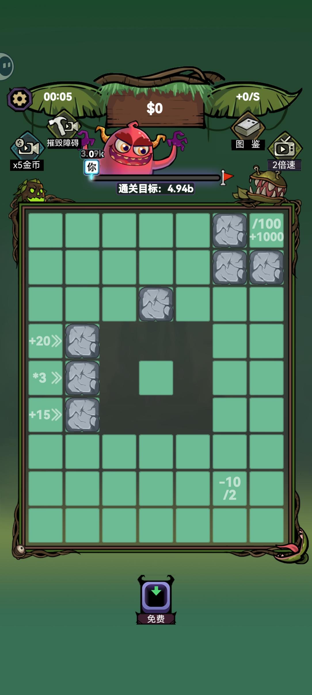 格子要看广告确实有点难受,不过可有可无,看了地形就舒服点,不看也能玩,2倍金币,和2倍时间没看过,感觉性价比不高。