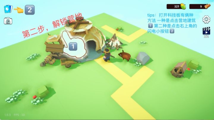 1.解锁岛屿,探索更多的地图环顾四周,发现第一阶段能通过采集食物(红果丛)解锁的岛屿只有原始地图上面的岛屿(后续我们称之为营地岛)。解锁岛屿!获取更多技能!2.解锁营地,提升科技可以通过捡树枝来获取木材,从而解锁营地。(注意哦!这里砍树是会晕倒的,是因为我们还没有解锁更多的科技,不能靠拳头来砍树哦)解锁营地后,我们后续可以通过俩种方式打开科技面板:(1)点击营地建筑(2)点击左上角的