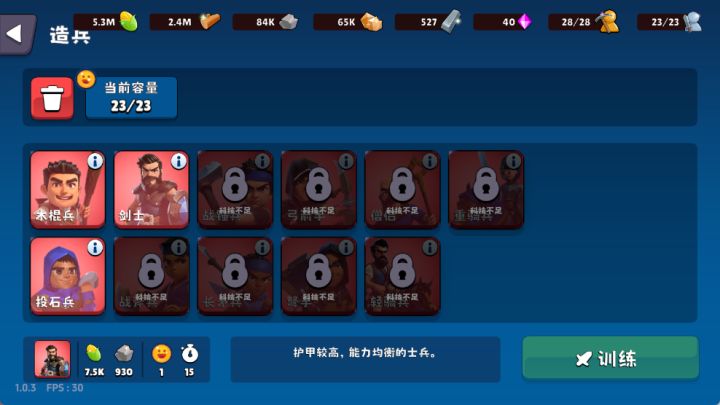 1.造兵(1)通过点击训练场,打开造兵界面。选择自己想要的士兵。每个士兵的消耗和技能都是不同的哦~(2)点击科技面板,右下角有造兵按钮,也可以进入造兵界面哦。2.编队(1)打开科技面板,同样右下角也会出现编队按钮。进入编队界面,在上方三个带有武器的框框中,选择自己想要调整的编队框,并点击下方的士兵即可将士兵添加至选择的编队框中。一共可以建造四个方队(右划可以看到第四个框框)(2)入侵、试