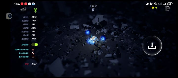 数值加成如视频所示,主要是前期7关比较难,玩家的机甲容易被建筑物挡住,攻击会被建筑物碎片遮挡,小怪的扑击很快,前期拿镰刀的精英怪有很长的远程攻击,这些都不是难点,难点在于给得吝啬的数值,没有主动回血道具,关卡结束没有回复,残血容易被浑水摸鱼的小怪弄死,小怪还会侧闪你信?但拿到蓄力武器和几个关键加成就变了,优先几个很重要的数值:前期优先攻击力打游击,前四关没有30的攻击很容易被堵死。然后是穿甲弹和加